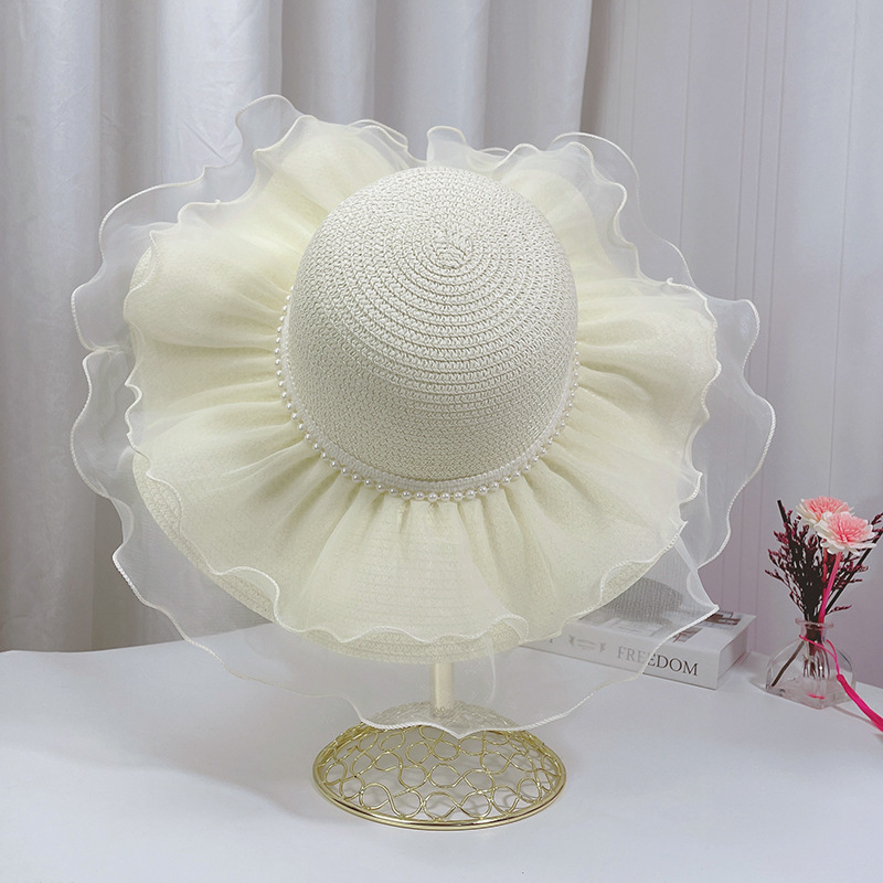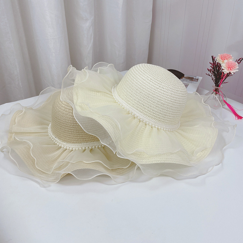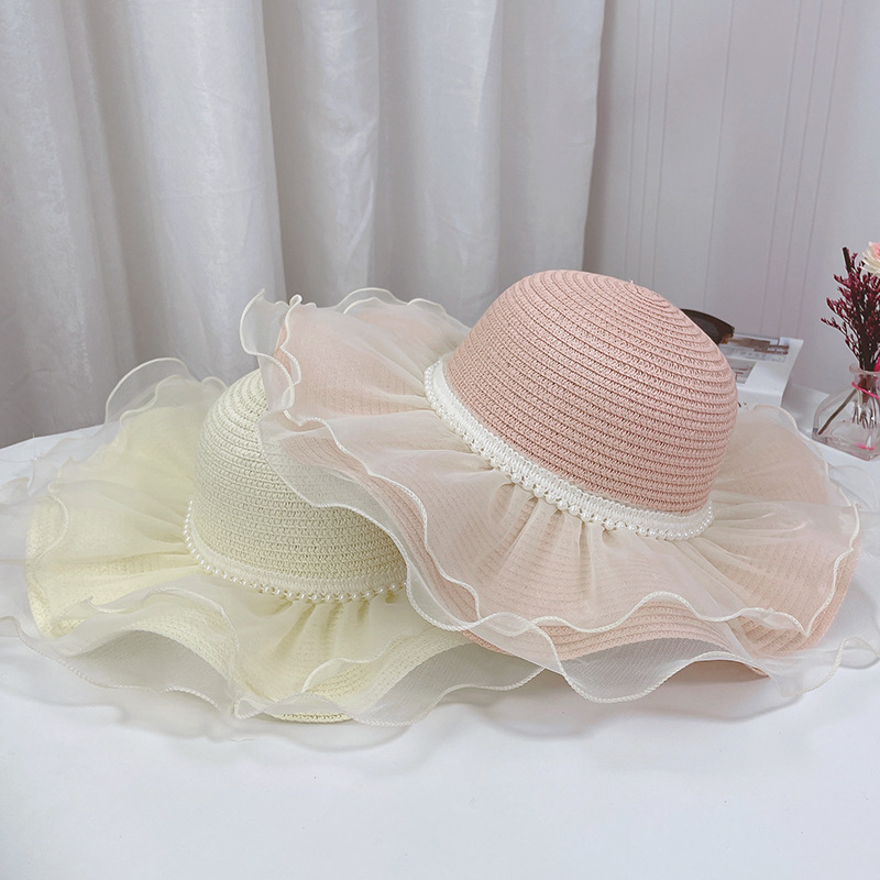 슈퍼 페어리 메시 선스크린 모자 여성의 여름 밀짚 모자 새로운 차양 모자 휴일 태양 모자 해변 모자 빅 브림