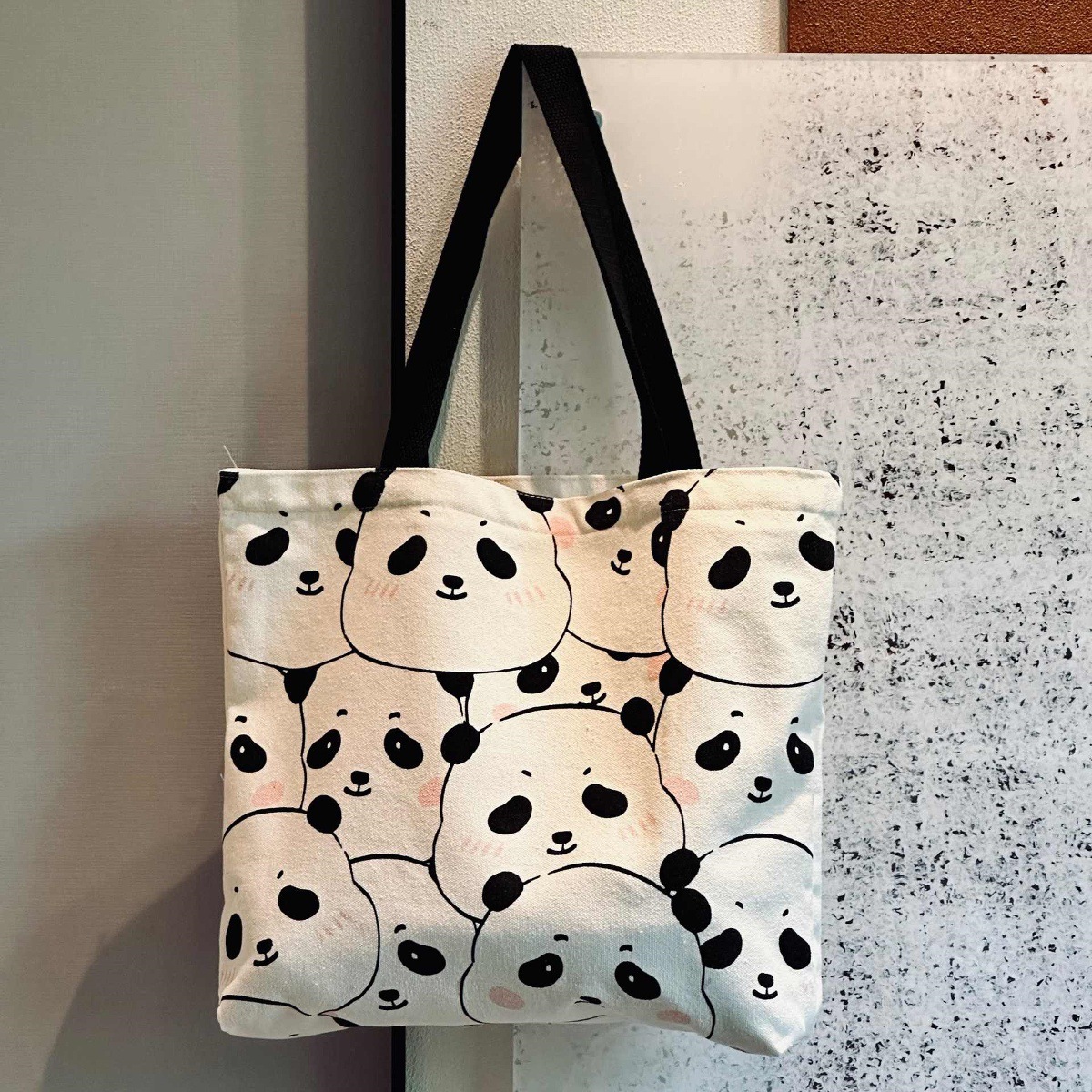 새로운 아름다운 팬더 캔버스 가방 여성 대학생 클래스 어깨 가방 통근 대용량 틈새 지퍼 사첼스토어 가기