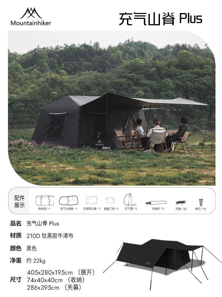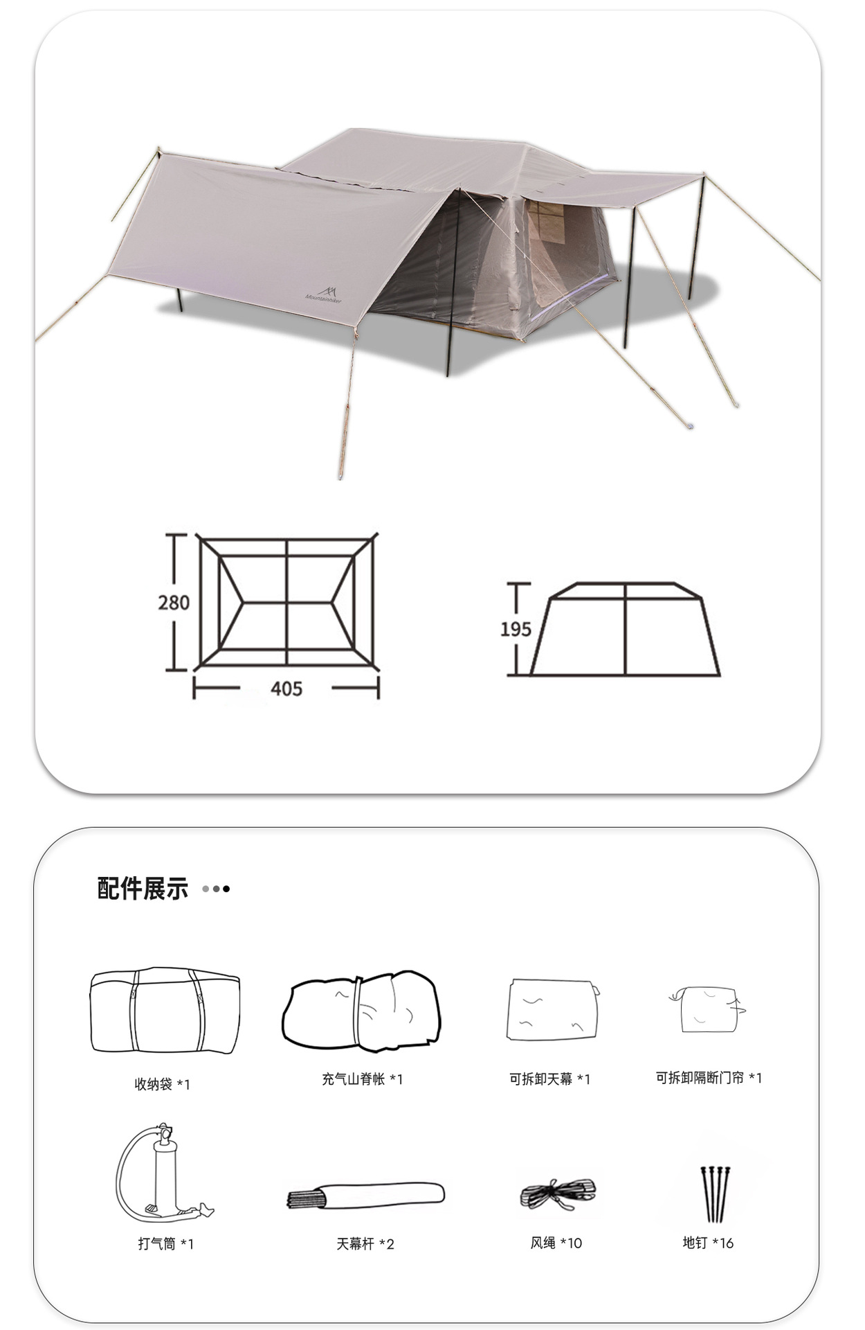 Mountain Guest Inflatable Ridge Plus 야외 캠핑 풍선 텐트 루프 텐트는 비와 햇빛으로부터 보호하고 넓은 공간을 제공합니다.스토어 가기