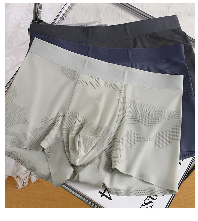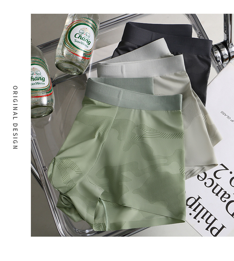 여름 원활한 아이스 실크 남성 속옷 남성 복서 위장 얇은 허리 편안한 통기성 복서 반바지 도매스토어 가기