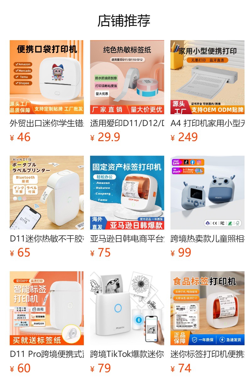 소스 공장 국경 간 휴대용 라벨 프린터 소형 Bluetooth 연결 미니 프린터 OEM 사용자 정의스토어 가기
