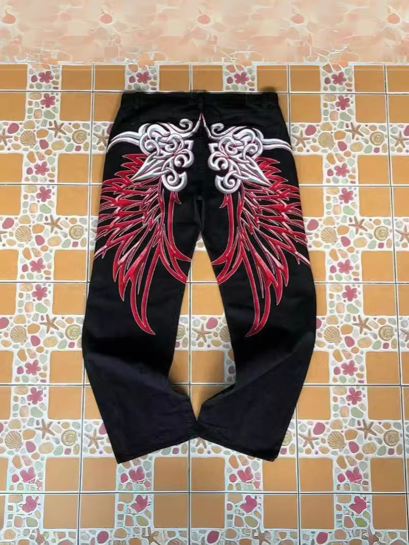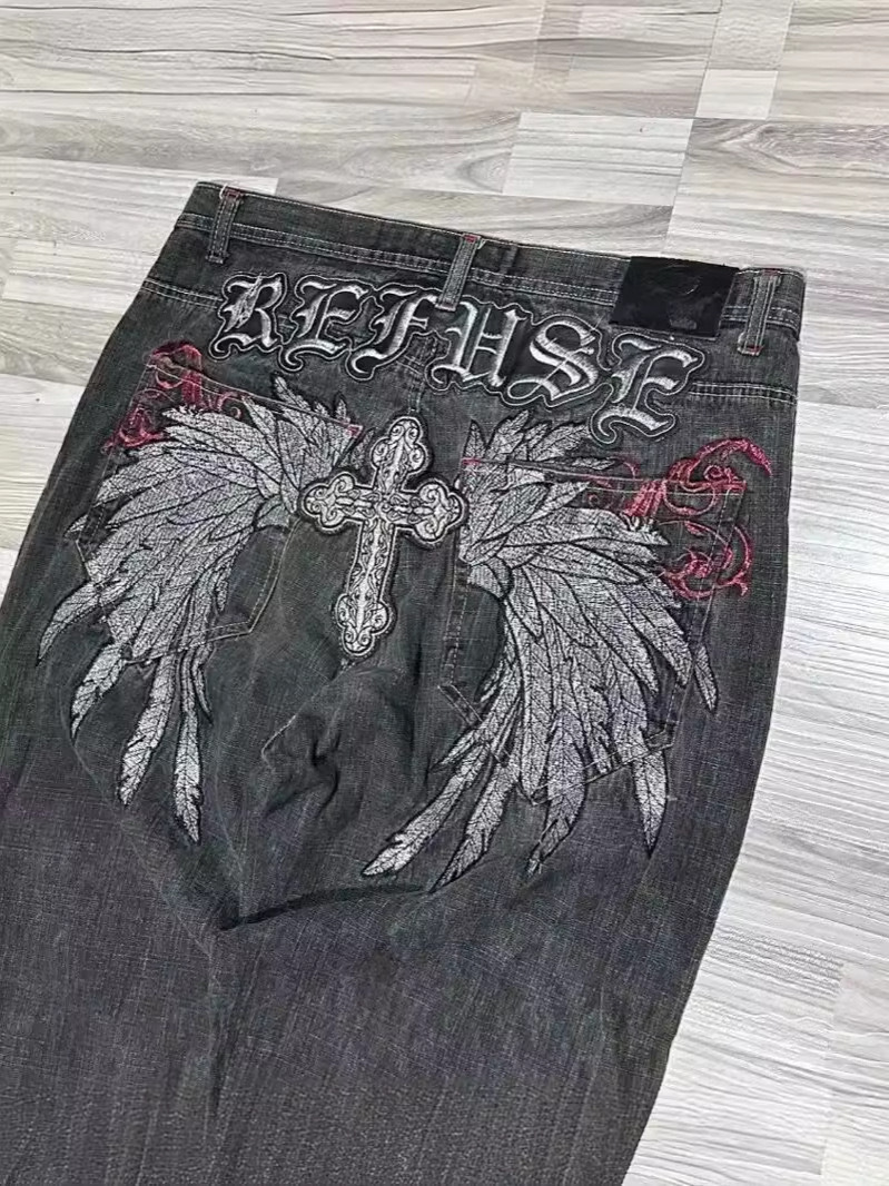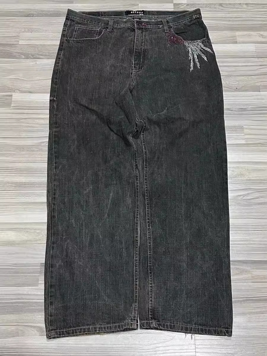 유럽과 미국의 힙합 프린트 청바지 남성용 하이 스트리트 틈새 트렌디 브랜드 맞춤형 루즈 와이드 팬츠를 판매하는 국경 간 제조업체스토어 가기