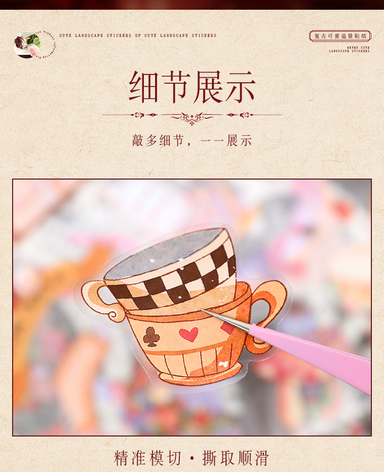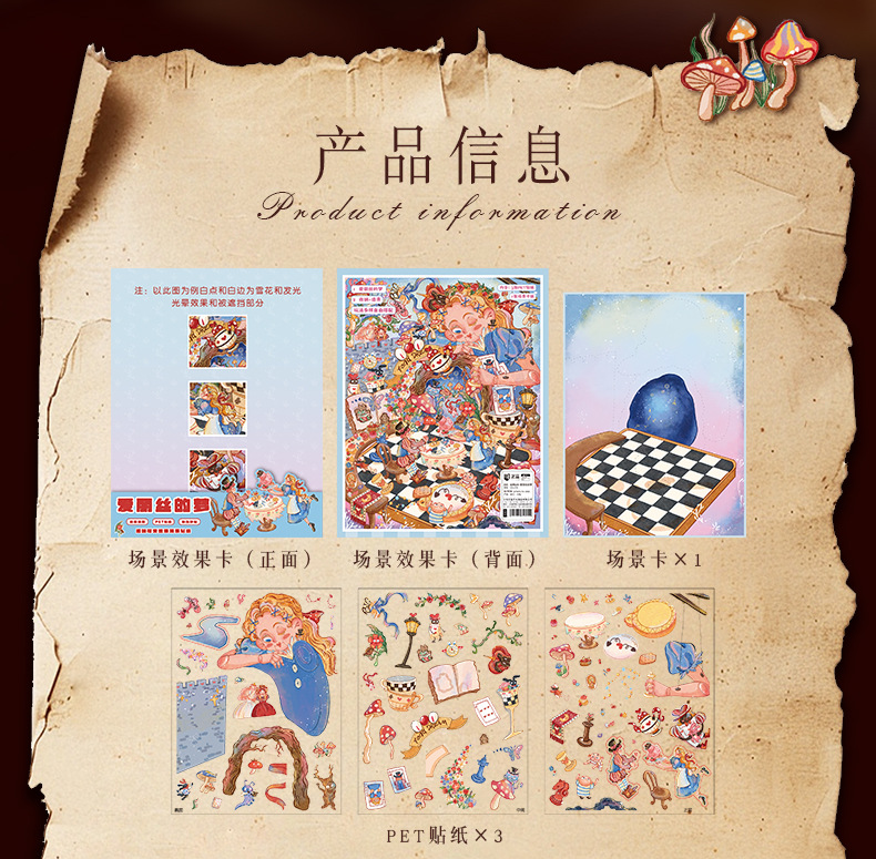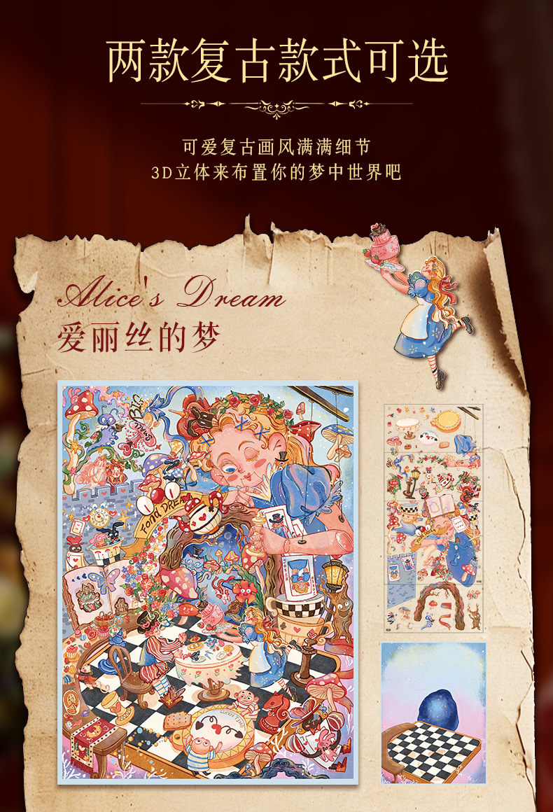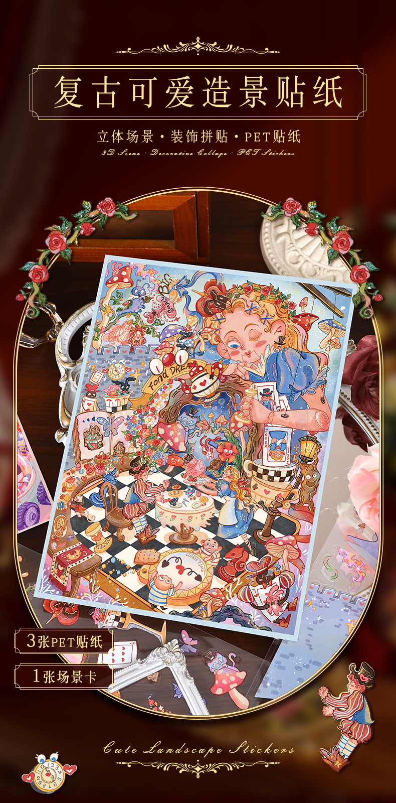 레트로 조경 스티커 귀여운 판타지 앨리스 장면 스티커 3D 시각적 미니어처 장면 콜라주 DIY 감압스토어 가기