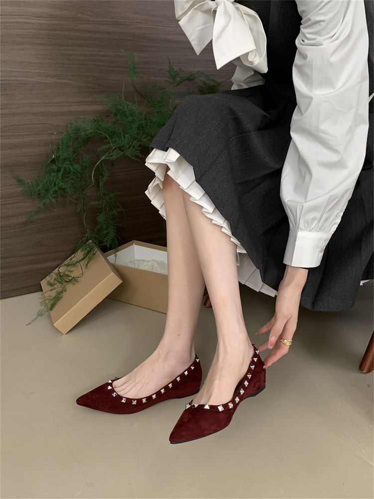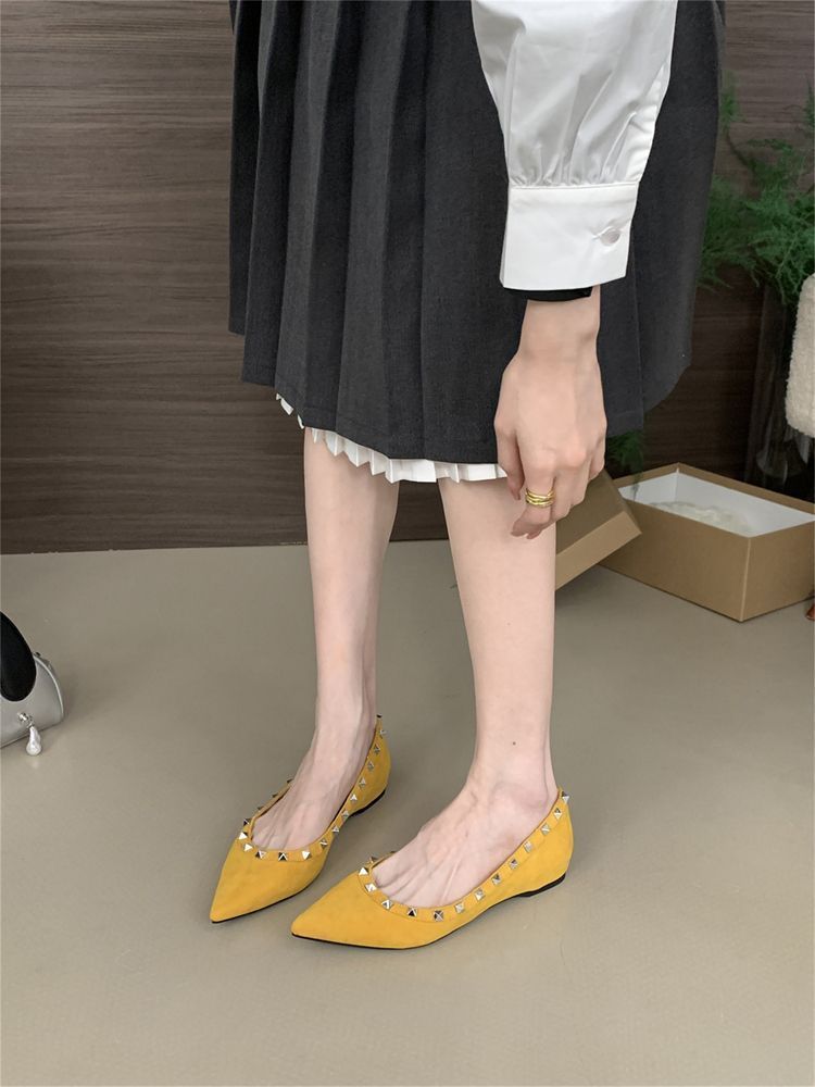프렌치 스웨이드 플랫 슈즈 Xiaoxiangfeng 2025 신작 뾰족한 봄 통근 리벳 슈즈 여성용 다용도 펌프스 트렌디스토어 가기