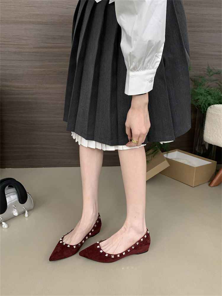 프렌치 스웨이드 플랫 슈즈 Xiaoxiangfeng 2025 신작 뾰족한 봄 통근 리벳 슈즈 여성용 다용도 펌프스 트렌디