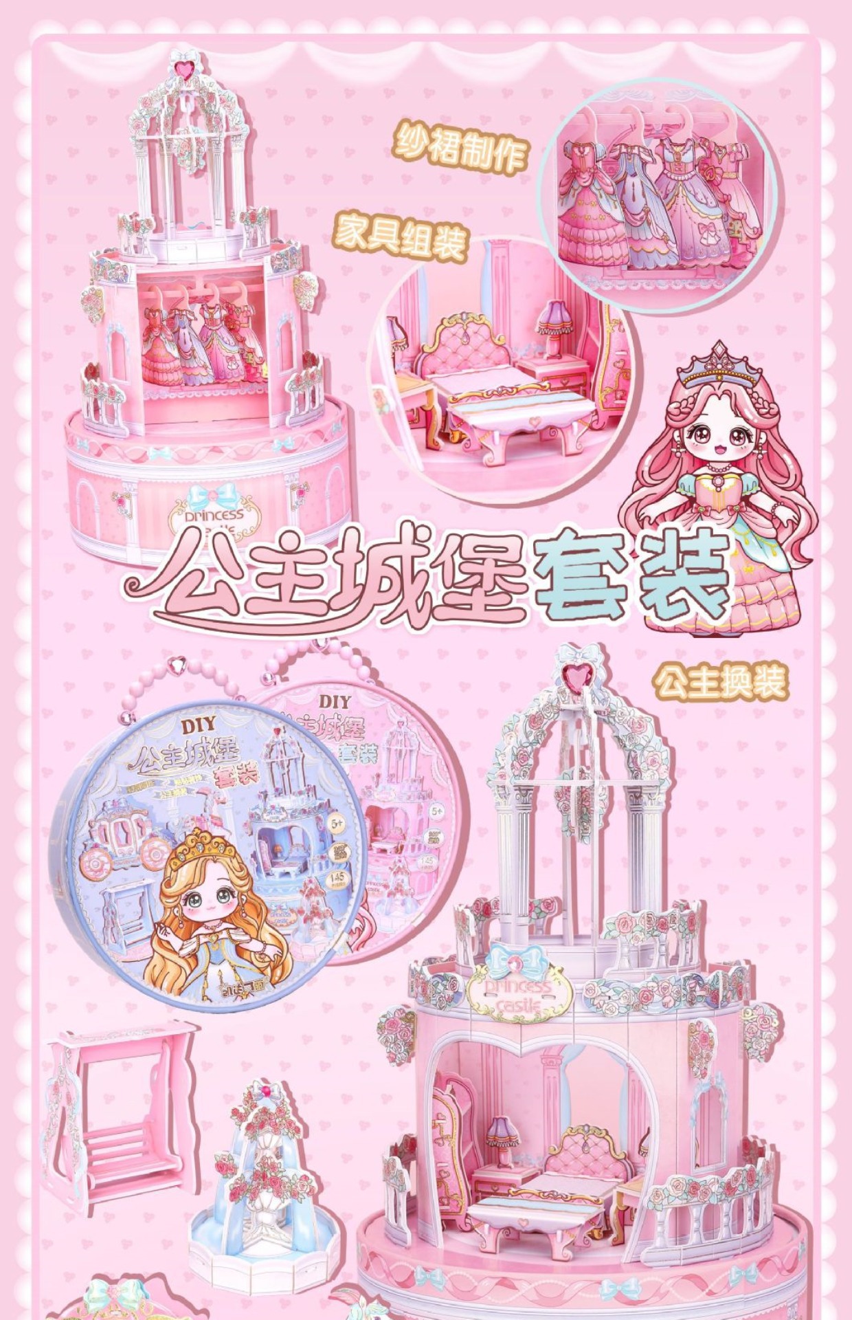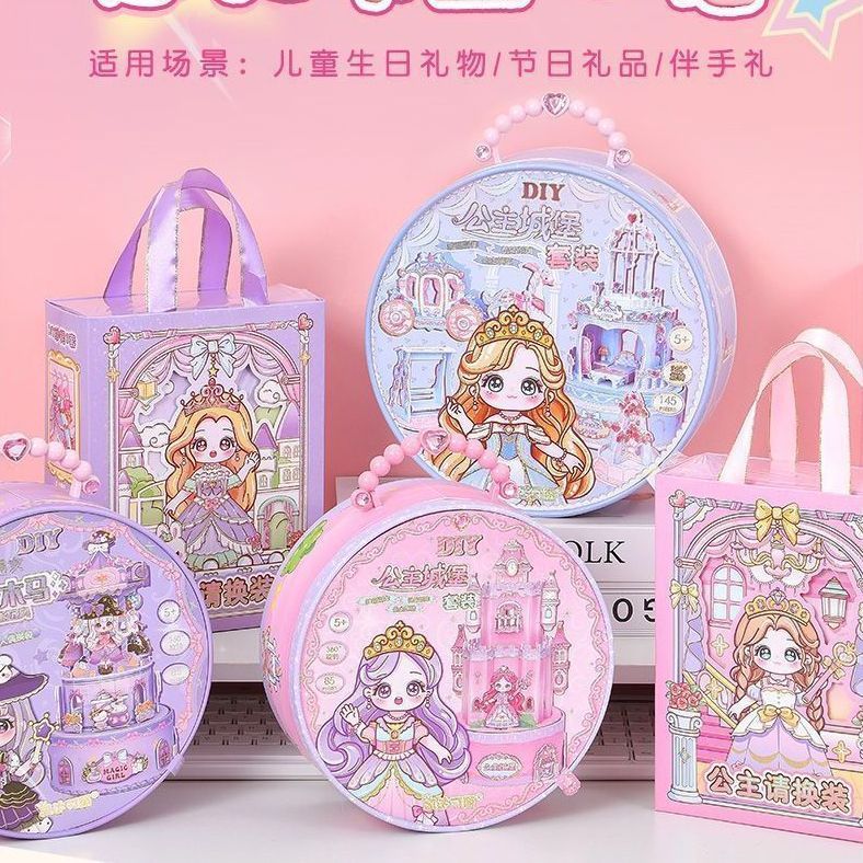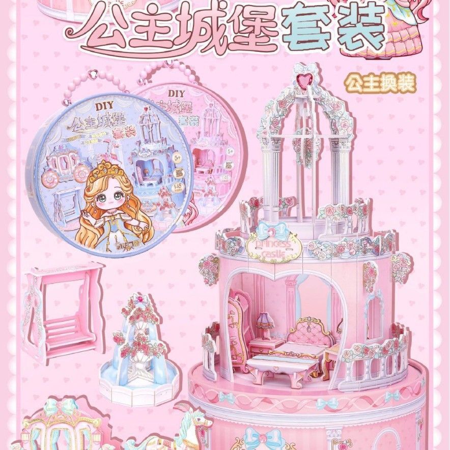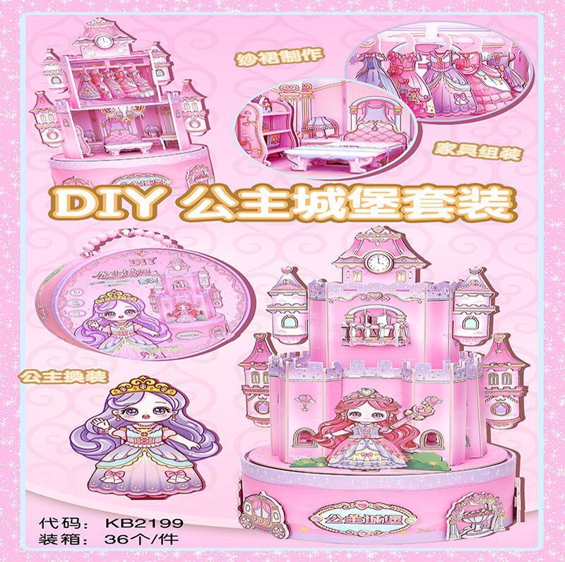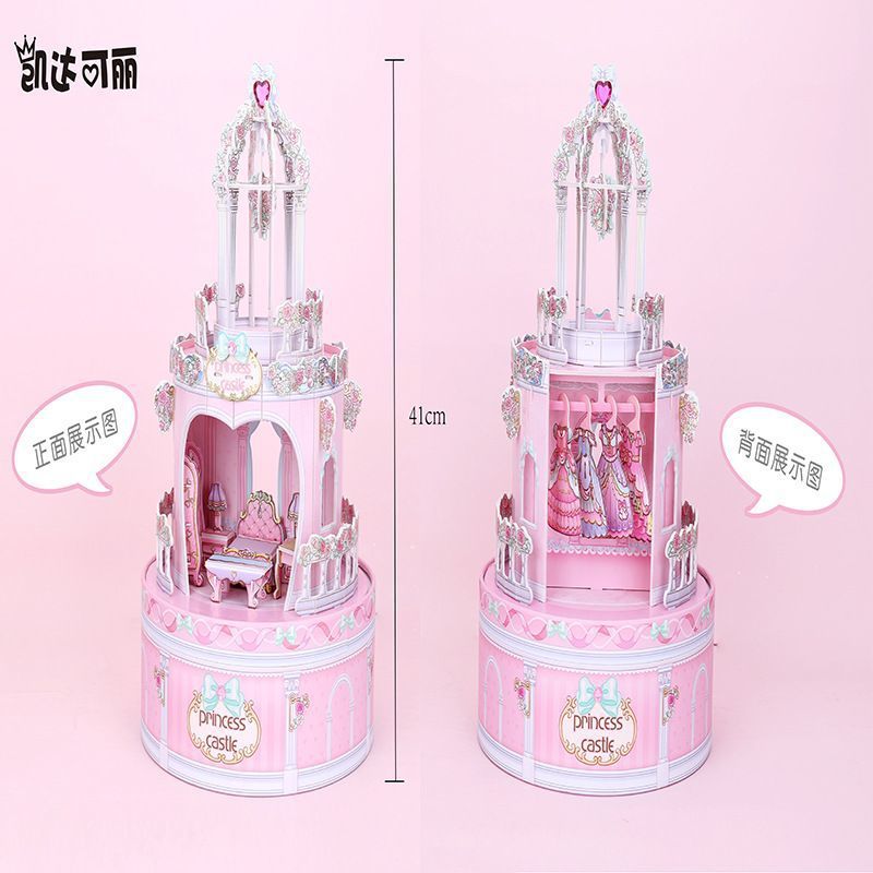 Keda Keli 수제 diy 입체 성 공주 드레스 업 장면 퍼즐 회전 관 어린 소녀 장난감