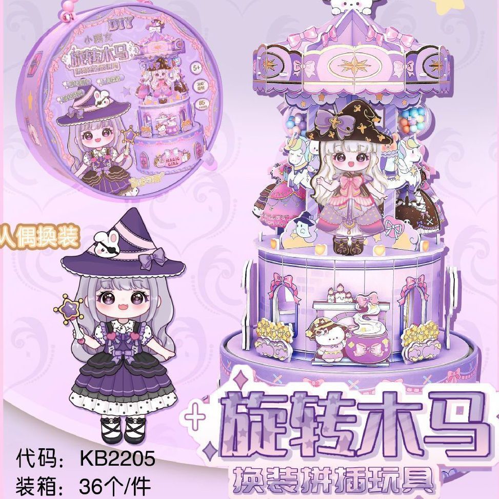 Keda Keli 수제 diy 입체 성 공주 드레스 업 장면 퍼즐 회전 관 어린 소녀 장난감스토어 가기