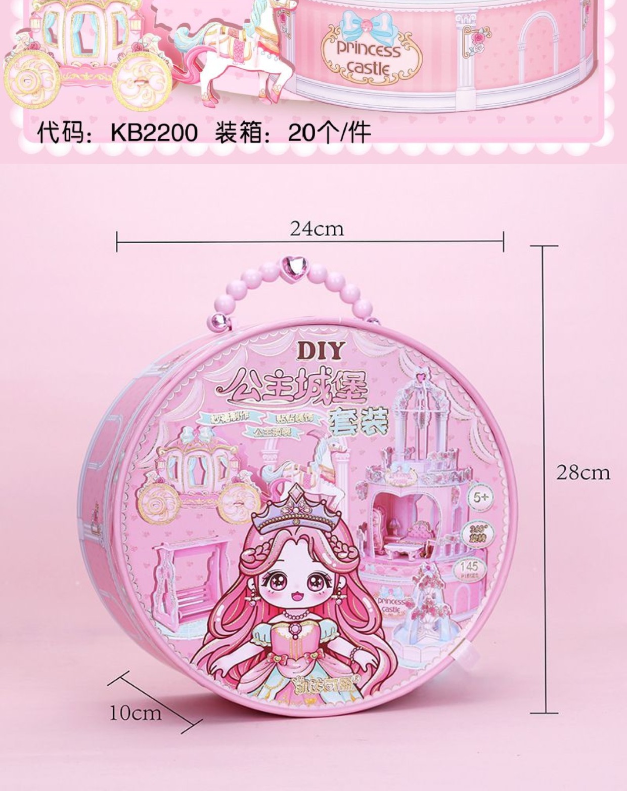 • 2195 휴대용 선물상자 [공주 생일 장면 세트] 핑크
