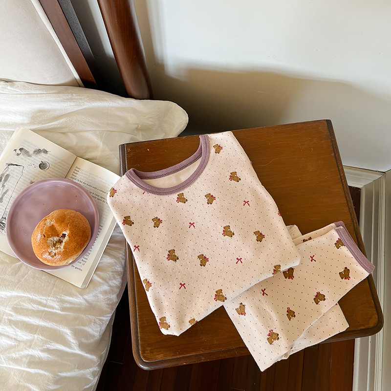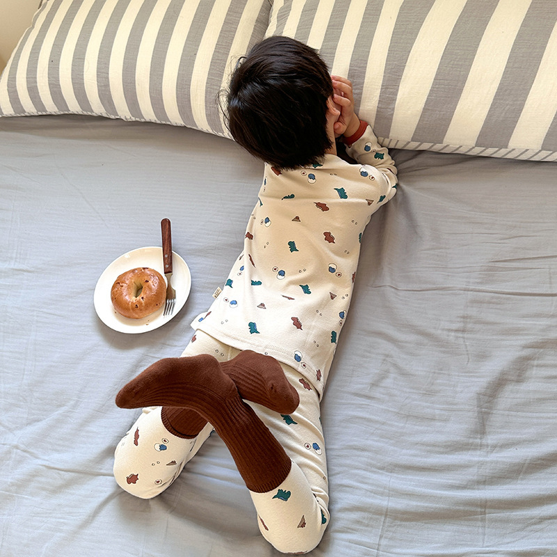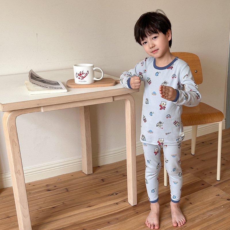 남학생과 여학생을위한 Emo Beibei 어린이 클래스 양모 풀 랙 본리스 홈 의류 아기 면 파자마 만화 속옷스토어 가기