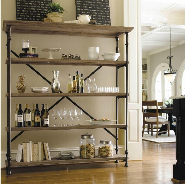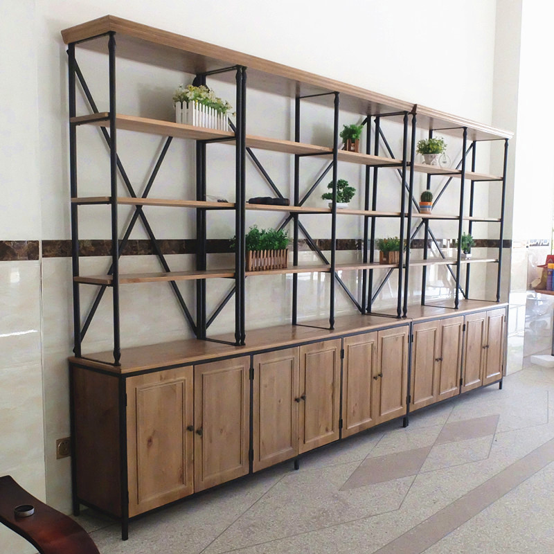 미국 복고풍 철 책장 선반 거실 단단한 나무 책장 산업 스타일 사물함 꽃 가게 이발소