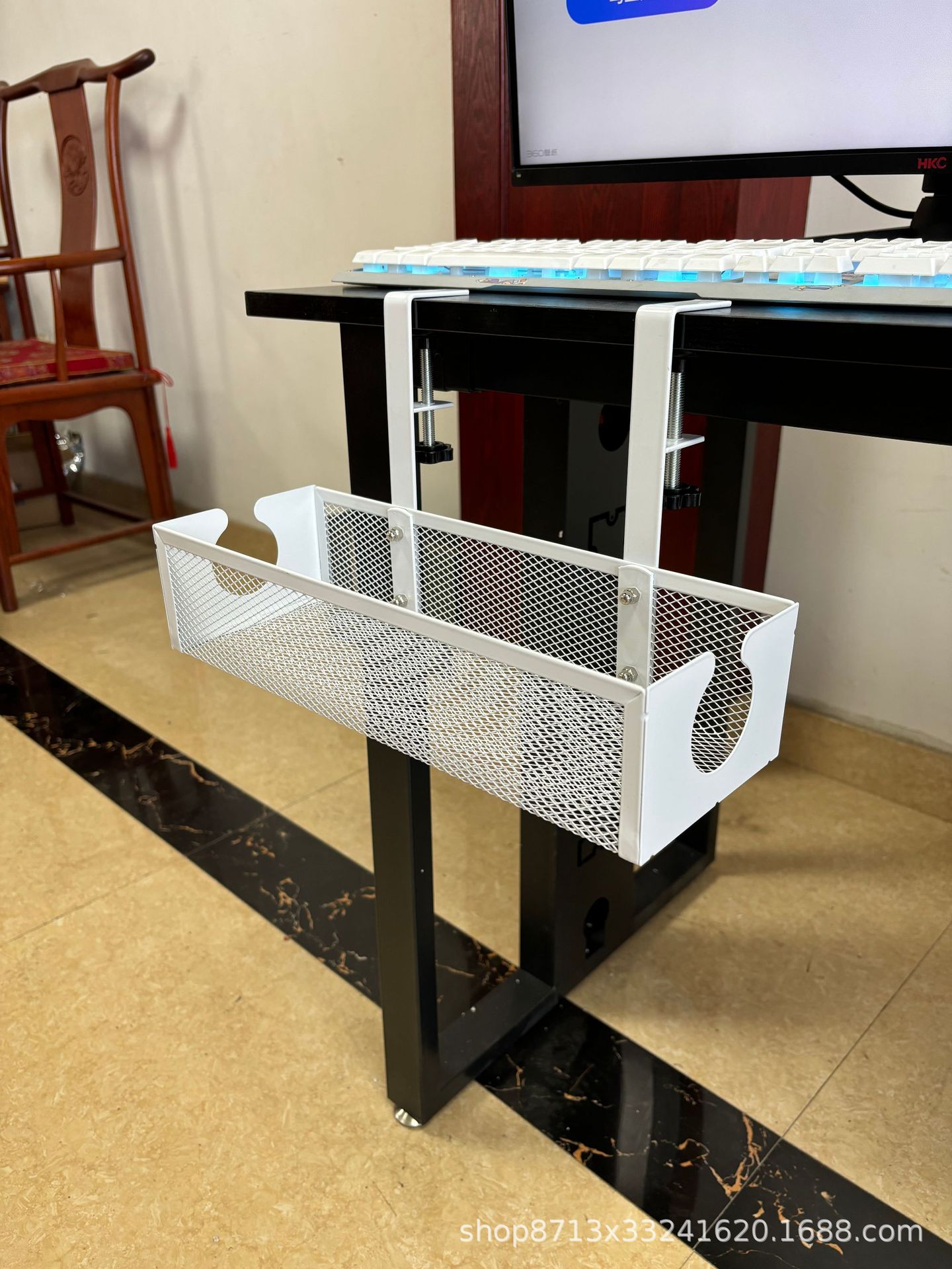 컴퓨터 책상 아래 펀치 없는 맞춤형 책상 아래 메쉬 바구니 보관함, 책상 아래 케이블 관리 랙, 책상 아래 전선 보관함, 전원 스트립 보관함
