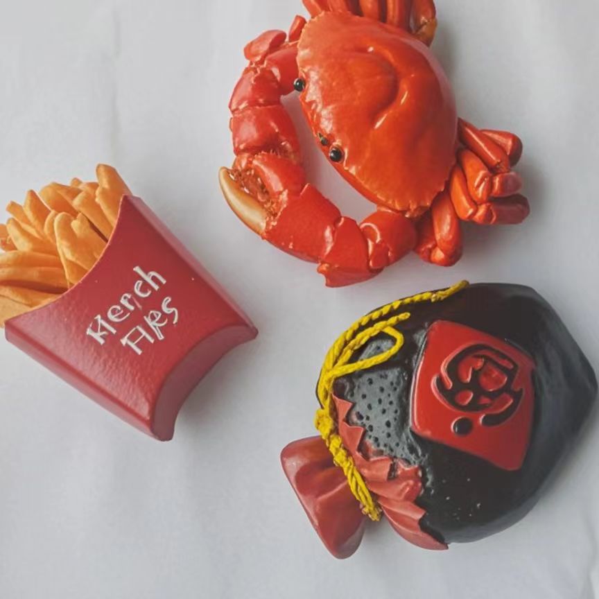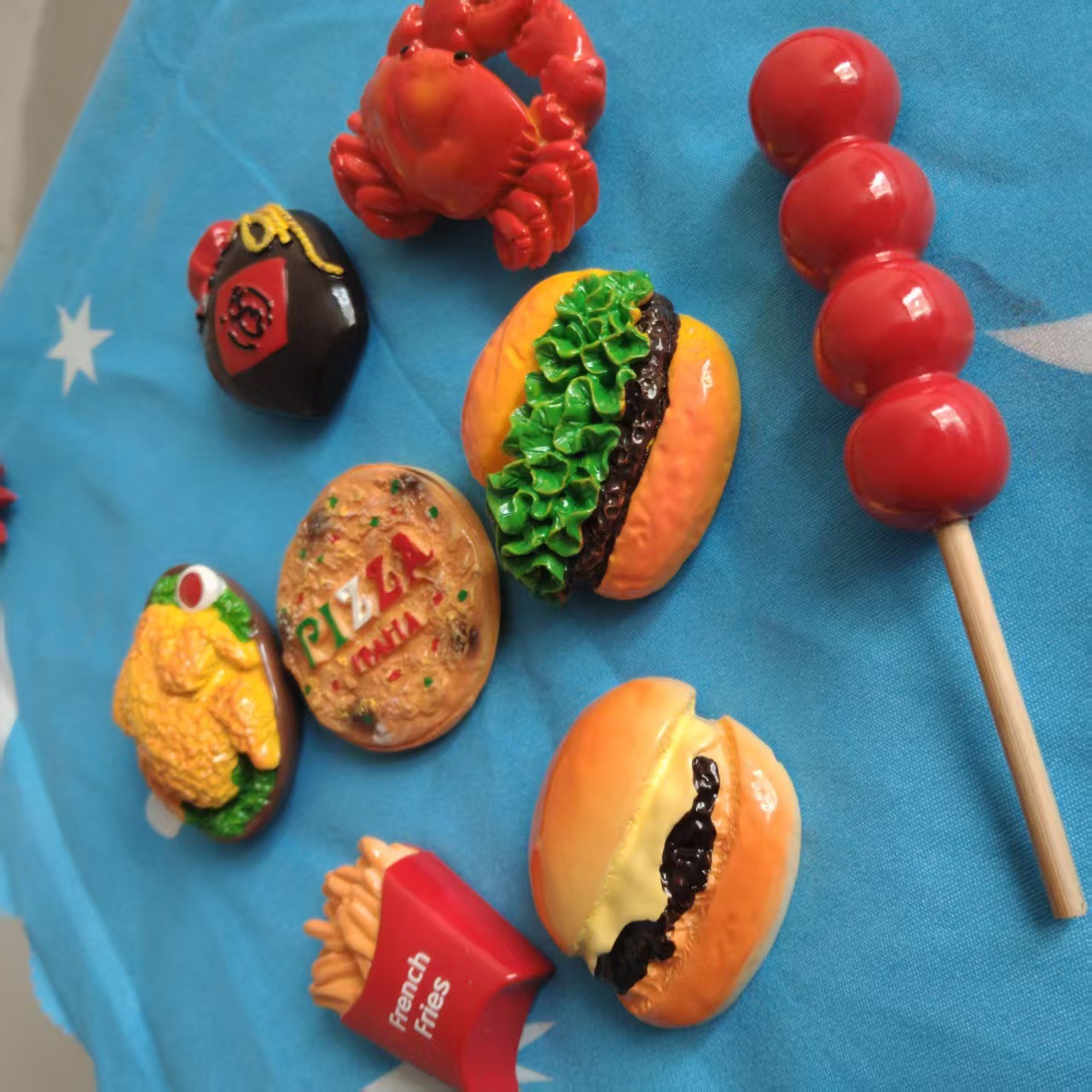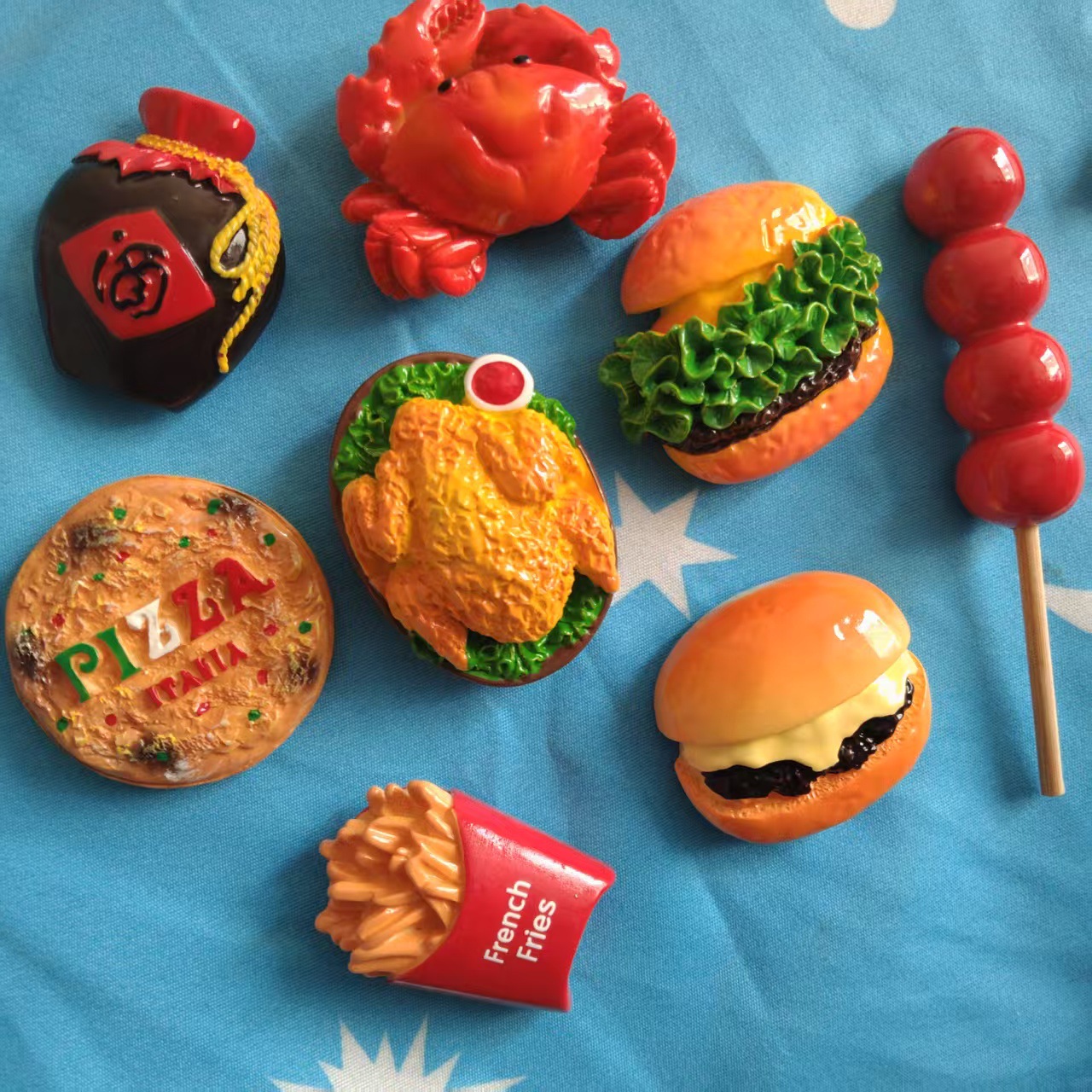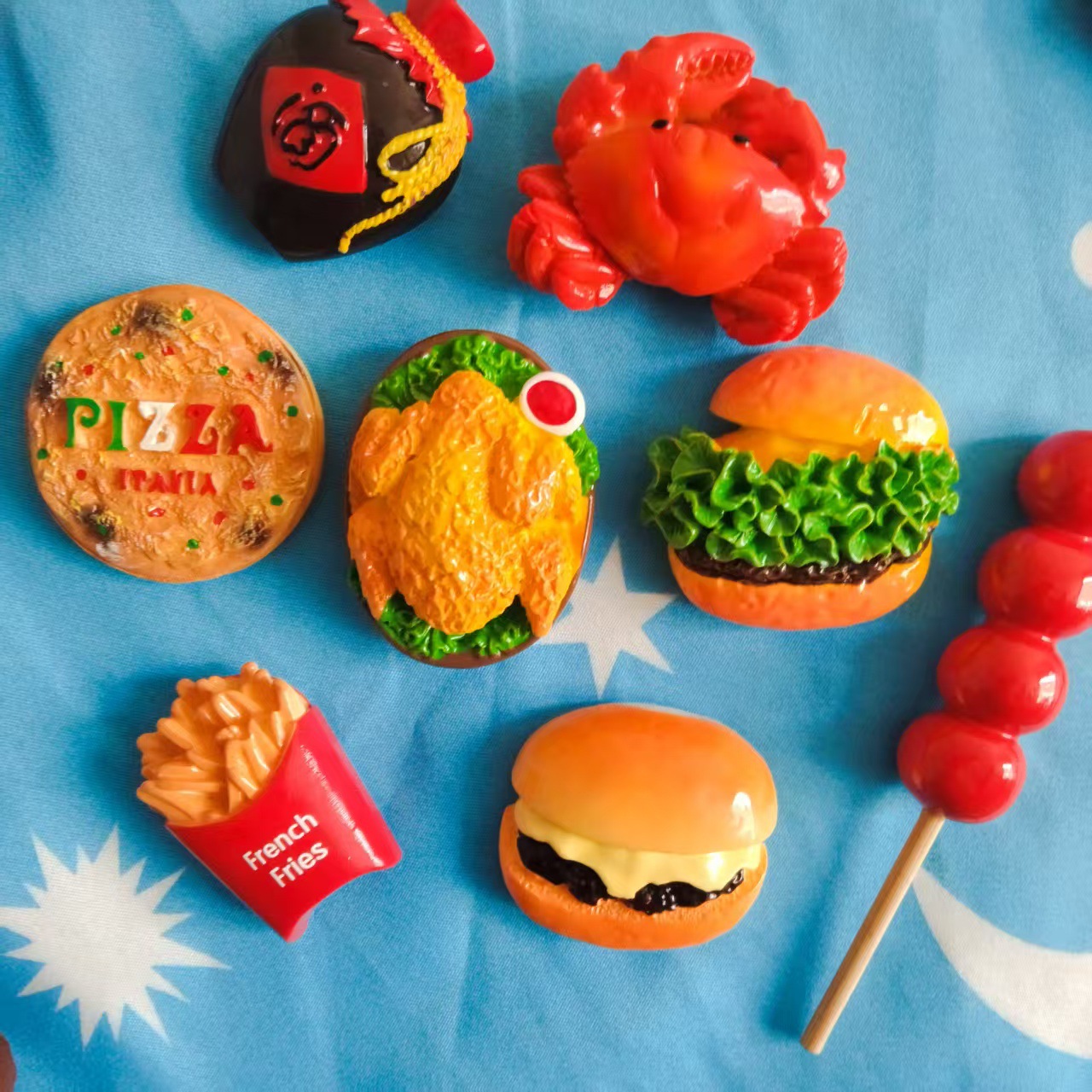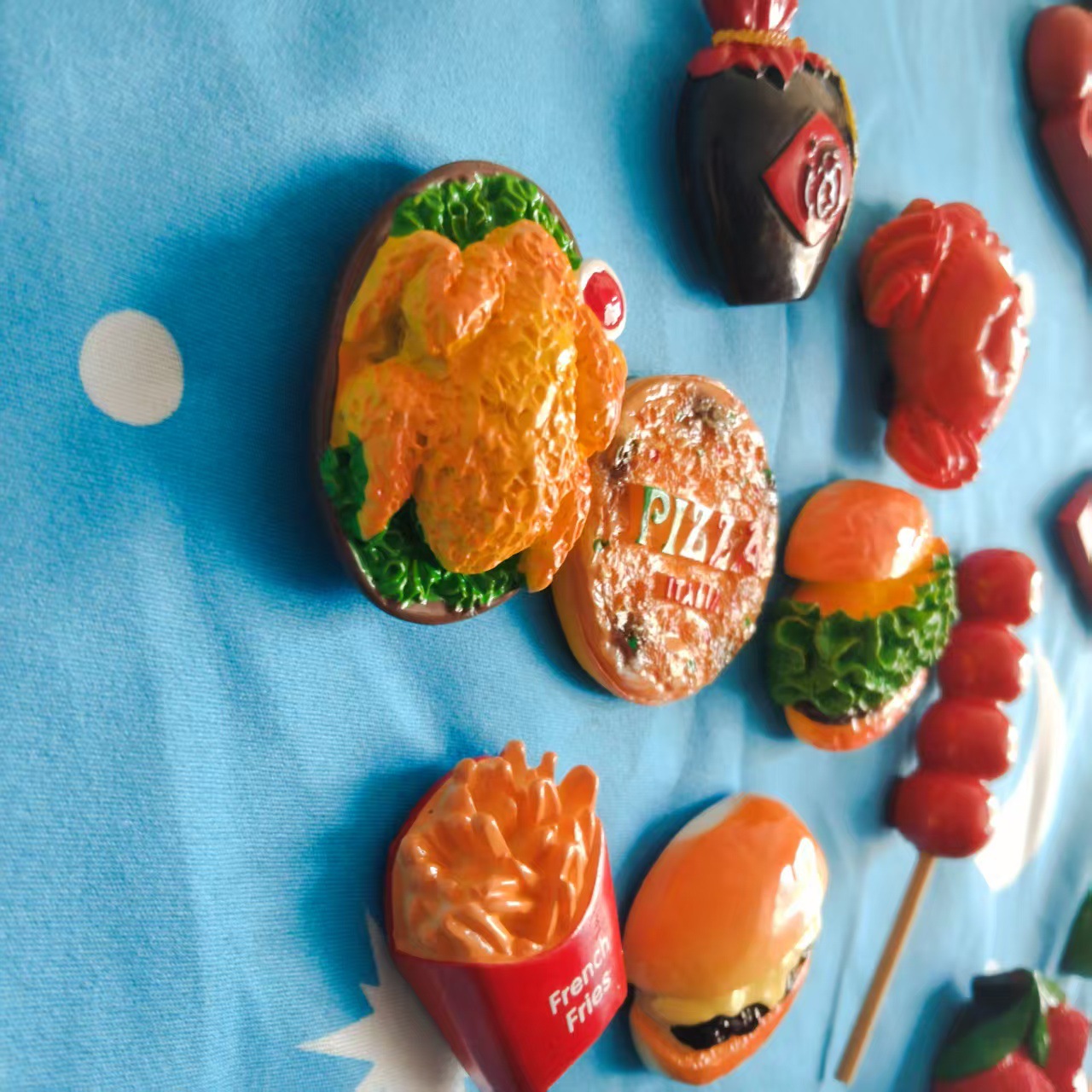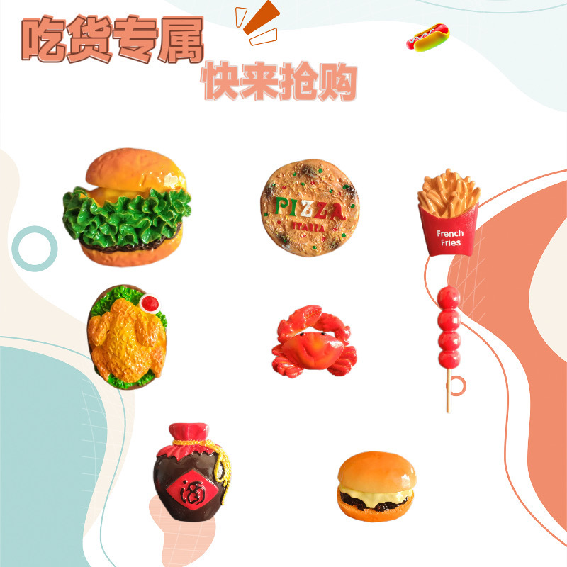 가정용 3D 입체 지역 특산품 호박 냉장고 자석 햄버거 세트 프라이드 치킨 장식용 자석 창의적인 레진스토어 가기