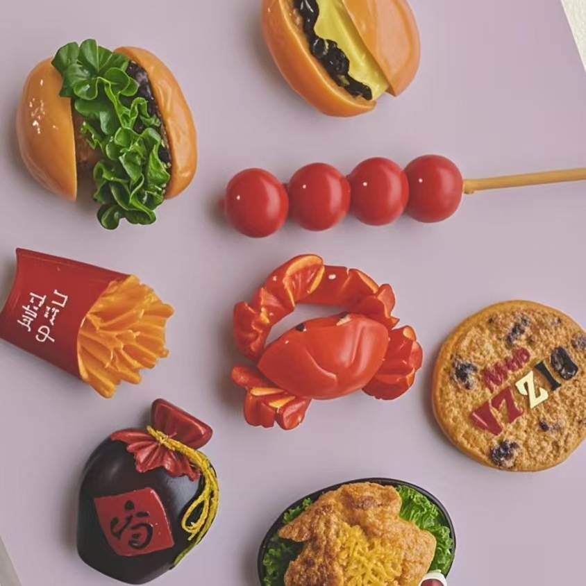 가정용 3D 입체 지역 특산품 호박 냉장고 자석 햄버거 세트 프라이드 치킨 장식용 자석 창의적인 레진