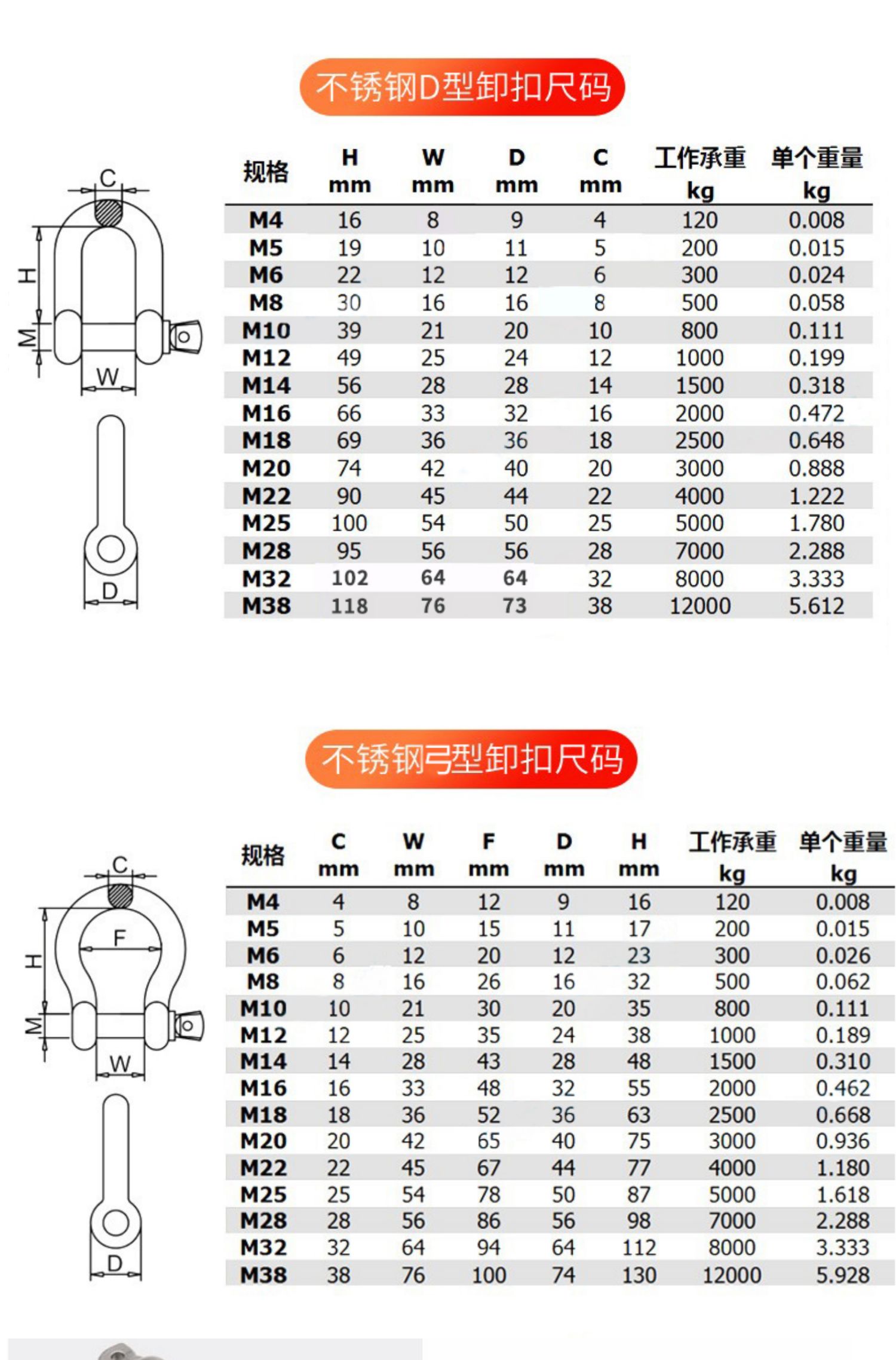 • D형 샤클 M4 [내하중 120kg ] 2개