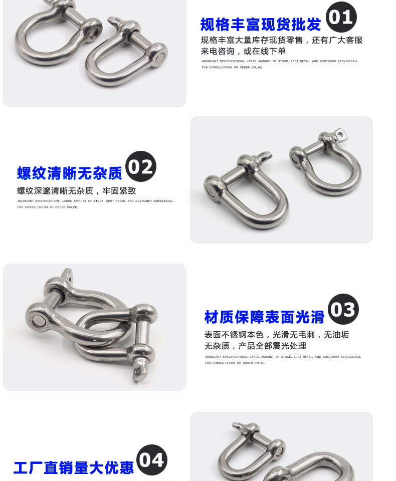 304 스테인레스 스틸 활 걸쇠 D 자형 걸쇠 리프팅 걸쇠 후크 U 자형 걸쇠 리프팅 링 스냅 링 말굽 버클스토어 가기