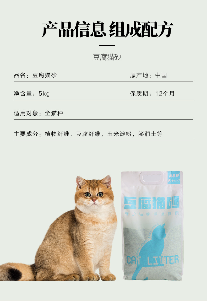 푸엔스 고양이 모래 두부 모래 탈취 저먼지 응고 원래 맛 변기 투입 가능 제조업체 애완동물 용품 무료 배송 5KG