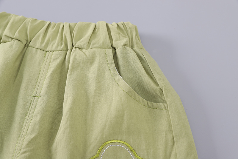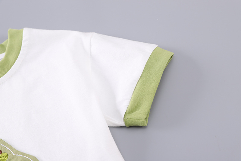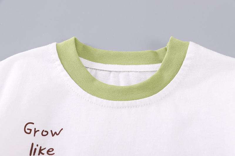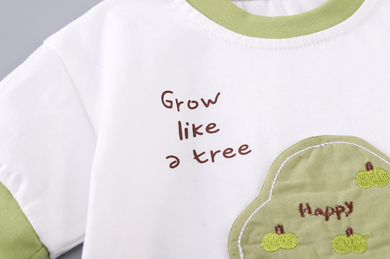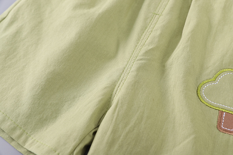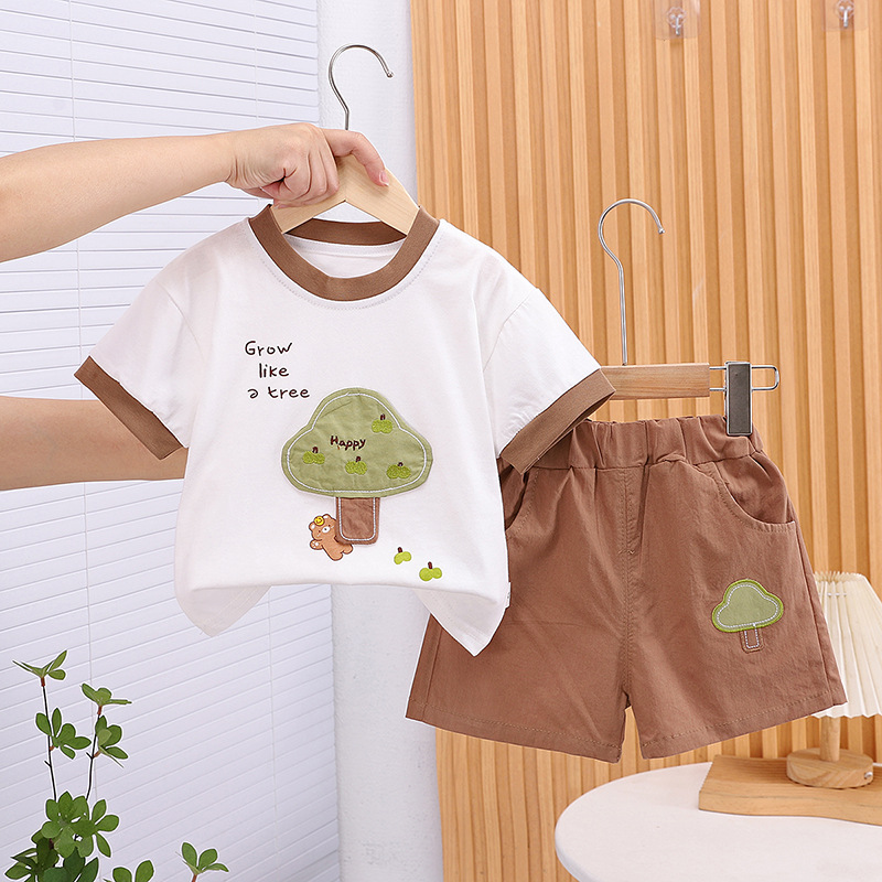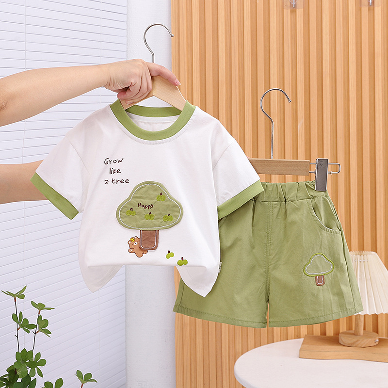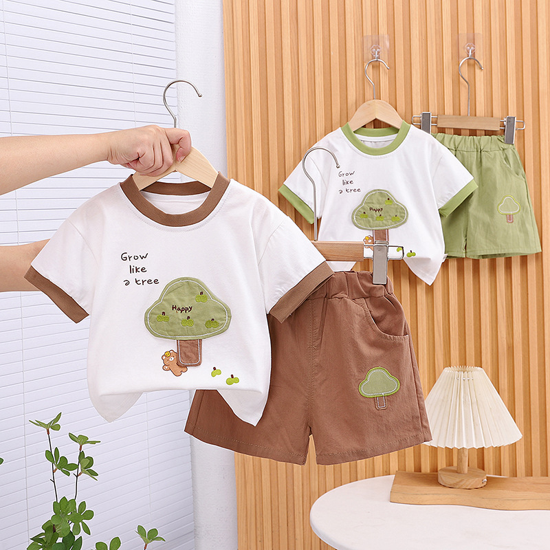 2025 아기 아기 여름 소년 세트 외국 스타일 버섯 귀여운 만화 짧은 소매 색상 일치하는 두 조각 도매스토어 가기