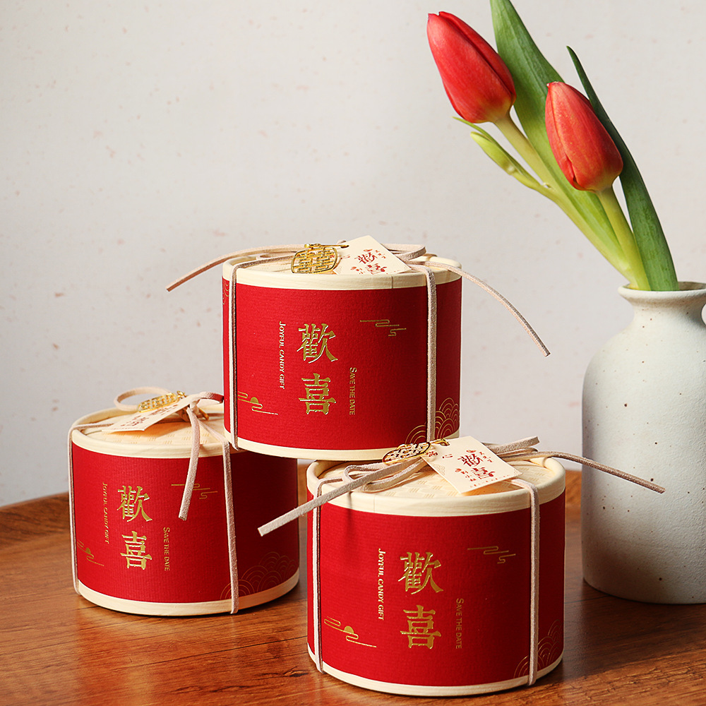 중국 스타일 사탕 상자 기선 사탕 빈 상자 김이 둥근 선물 상자 모조 나무 결혼 선물 상자