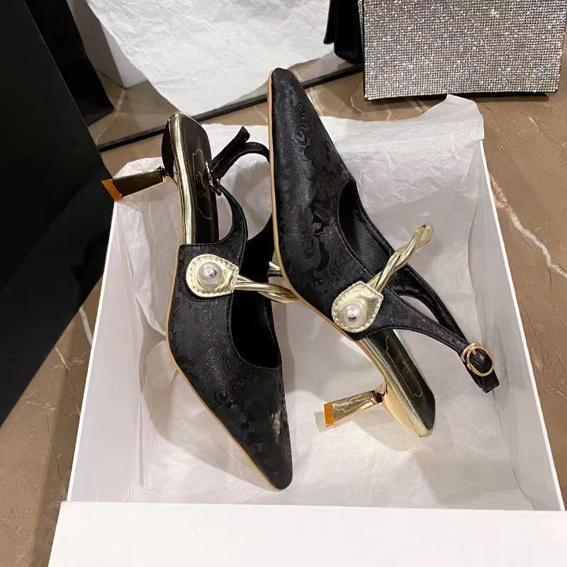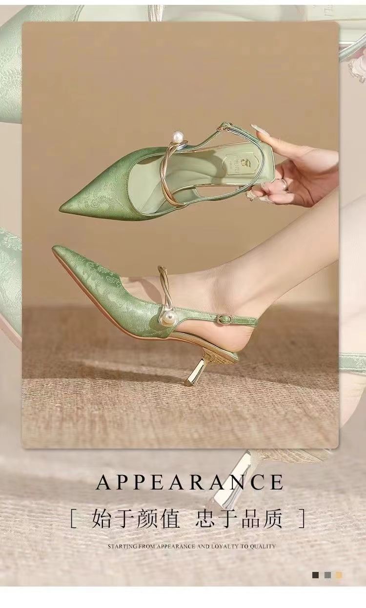 새로운 중국 스타일 여성 치파오 하이힐 2025 여름 새로운 스틸레토 샌들 유행 원라인 밴드 발가락 뾰족한 발가락스토어 가기