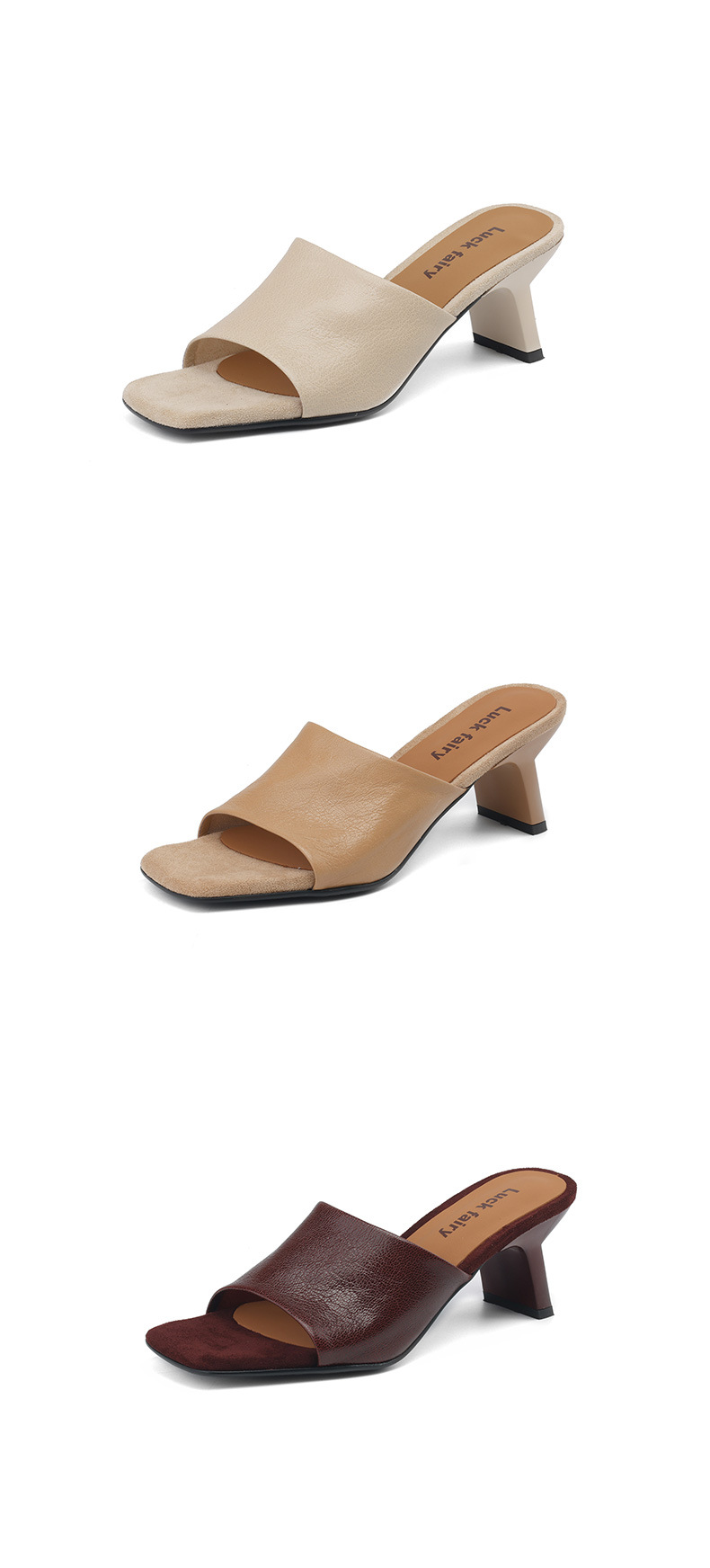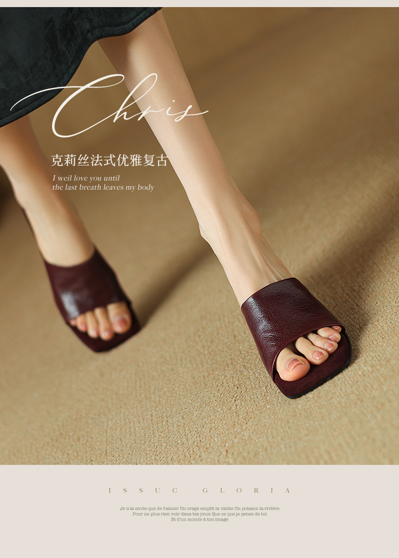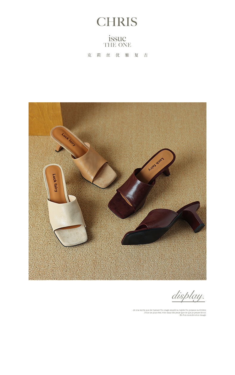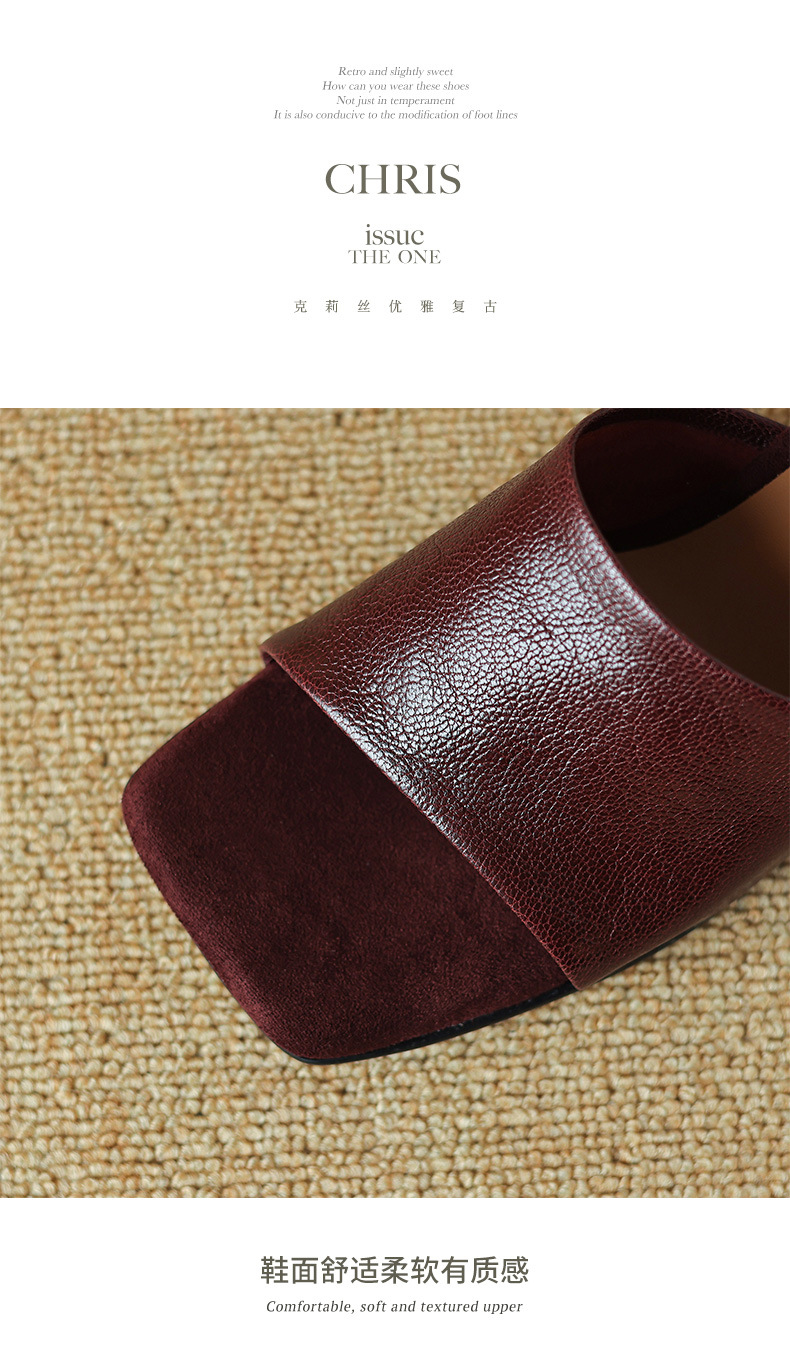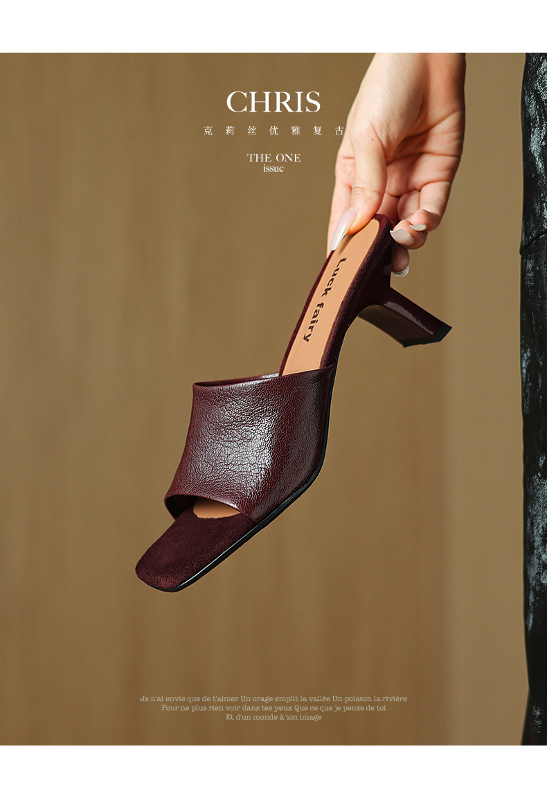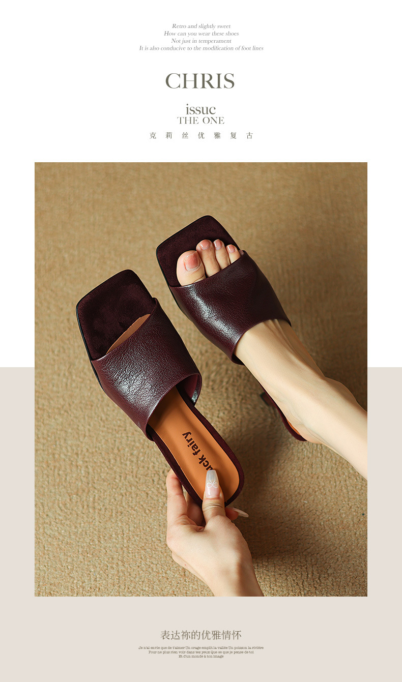 레트로 스타일 미니멀리스트 올 매치 2025 봄과 여름 새로운 스타일 슬립 온 스퀘어 헤드 양가죽 두꺼운 힐 샌들 여성용