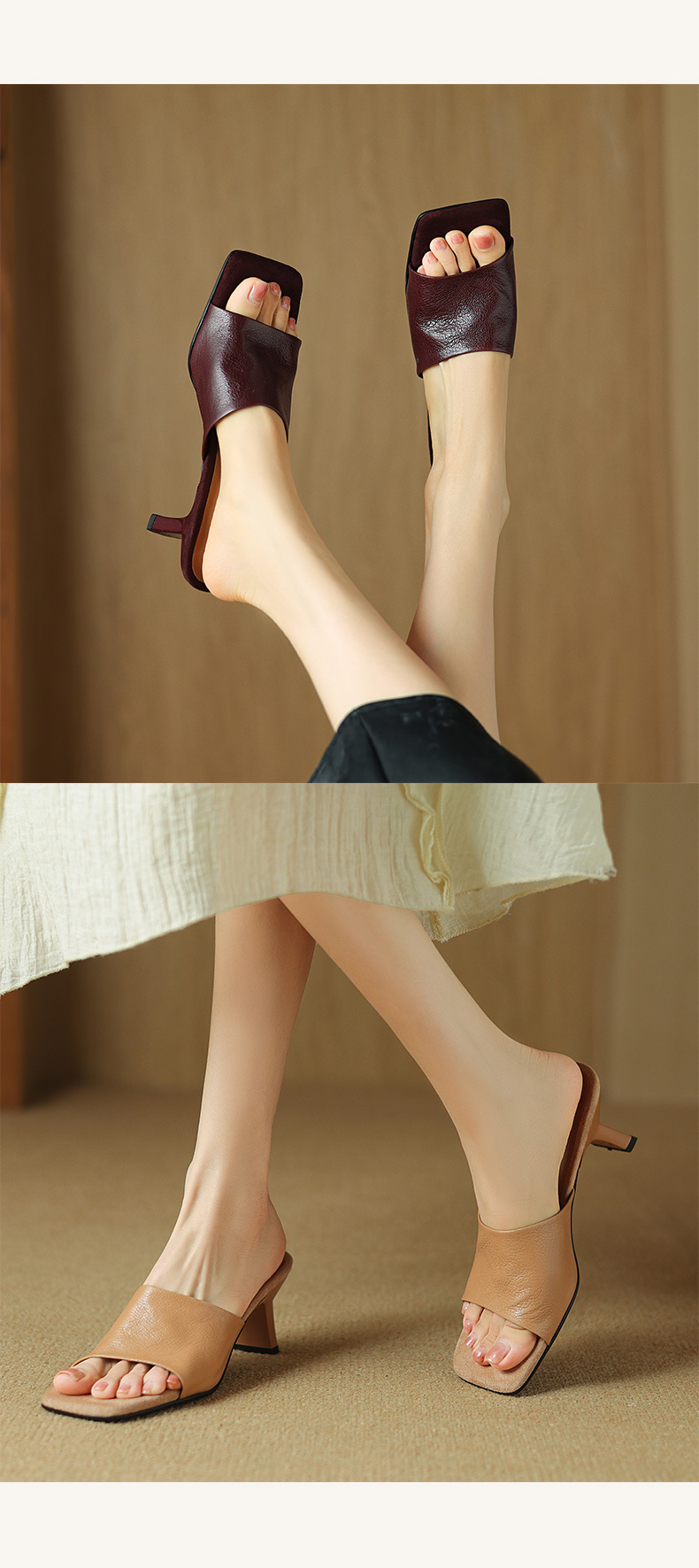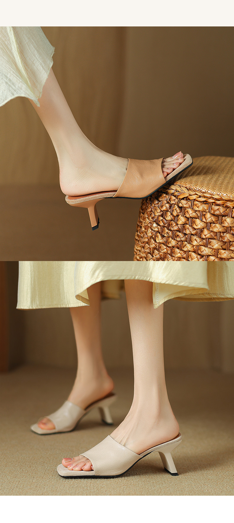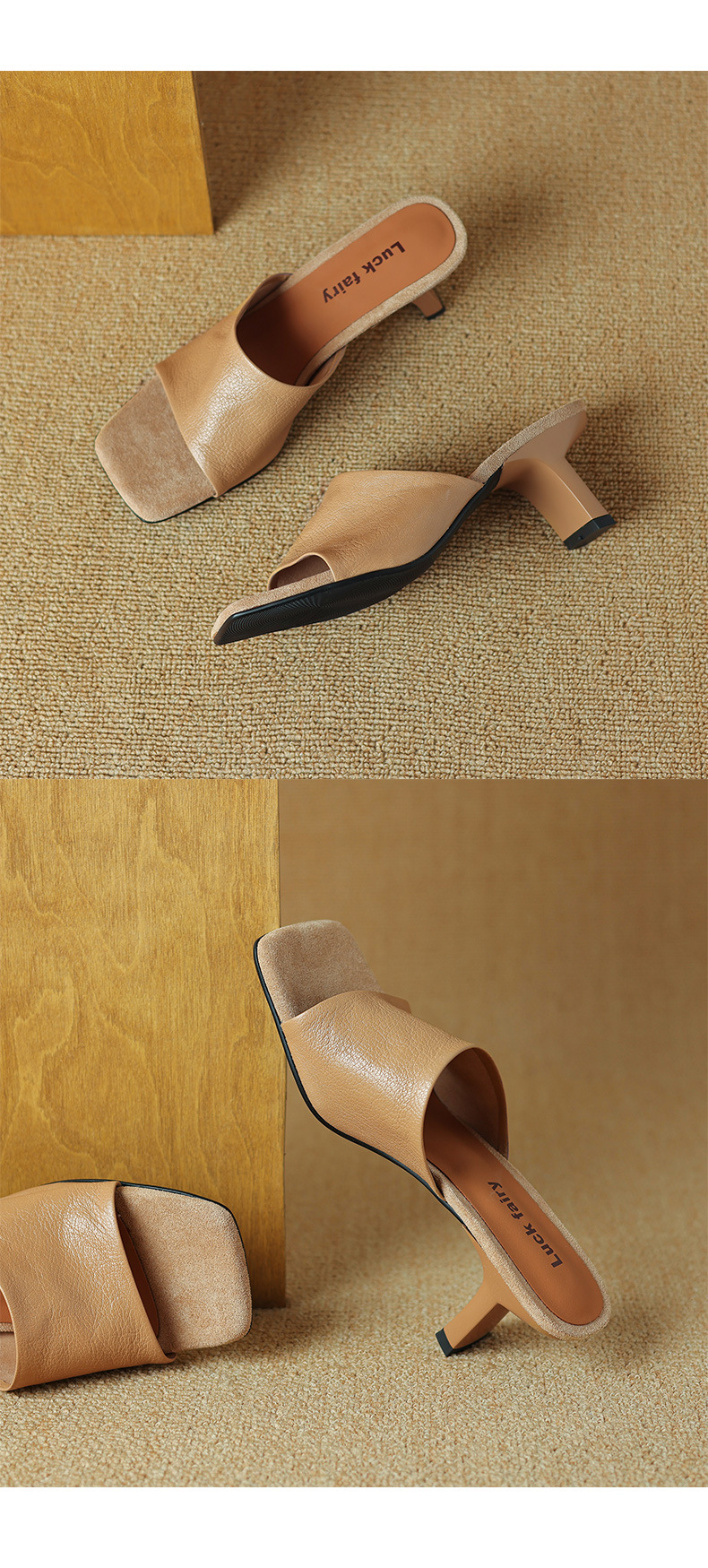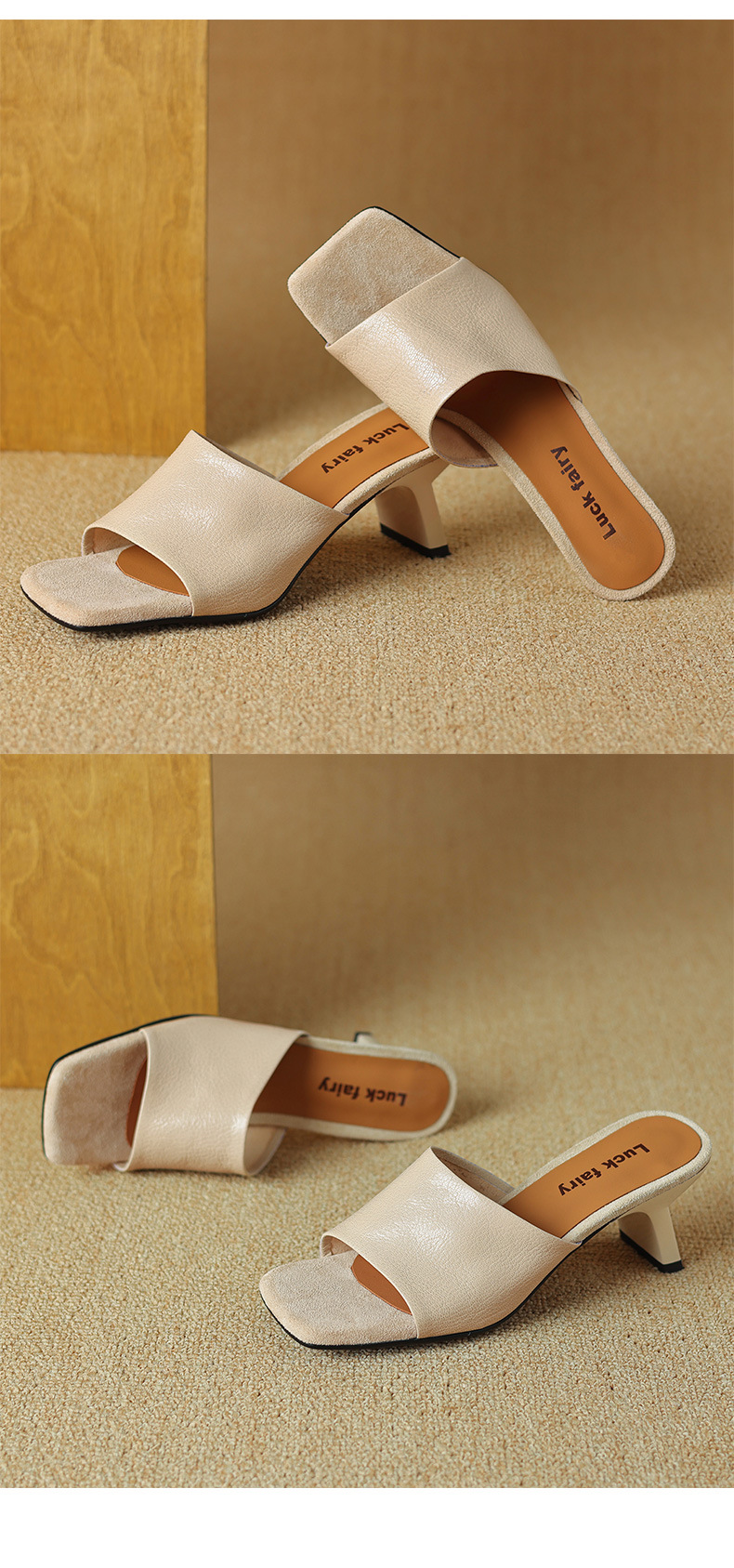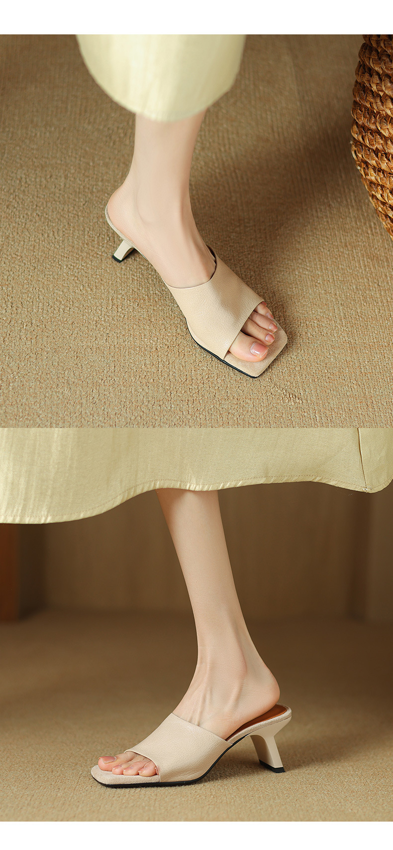 레트로 스타일 미니멀리스트 올 매치 2025 봄과 여름 새로운 스타일 슬립 온 스퀘어 헤드 양가죽 두꺼운 힐 샌들 여성용