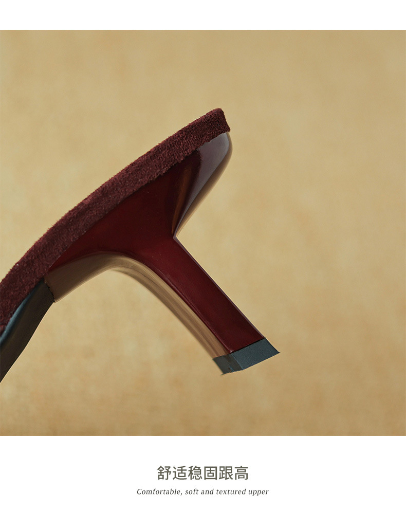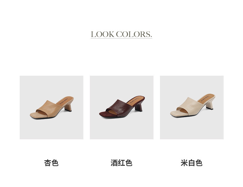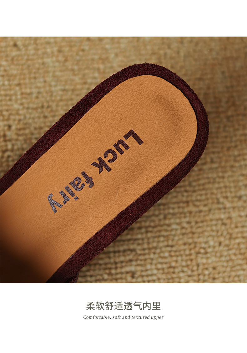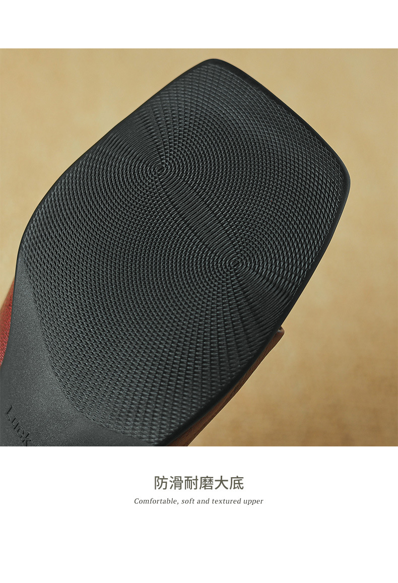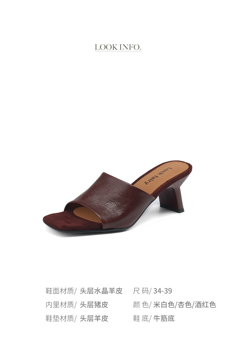 레트로 스타일 미니멀리스트 올 매치 2025 봄과 여름 새로운 스타일 슬립 온 스퀘어 헤드 양가죽 두꺼운 힐 샌들 여성용스토어 가기