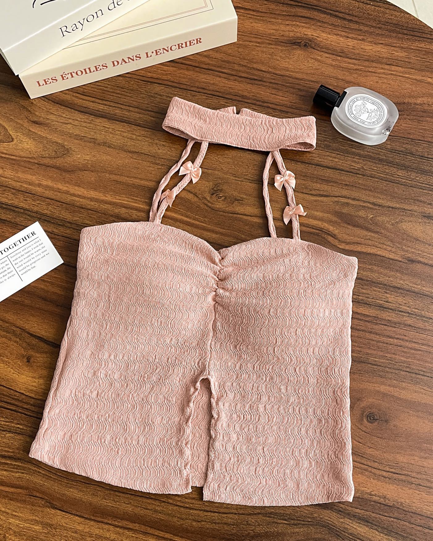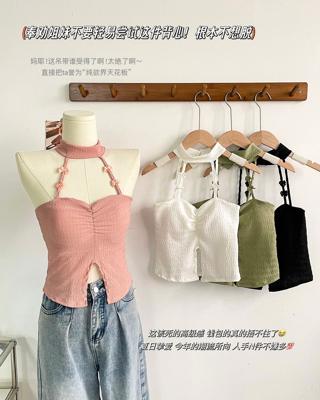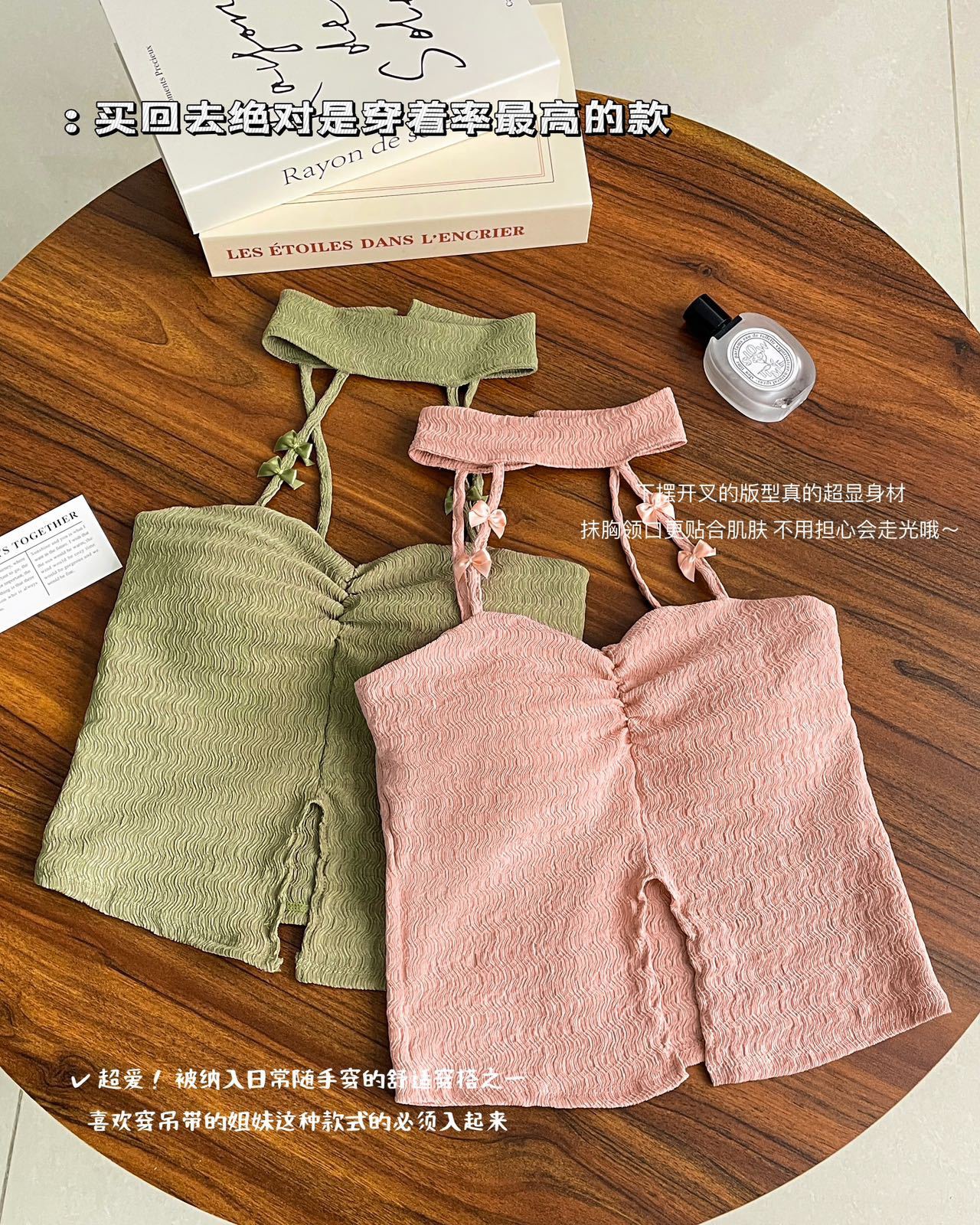 여름에 입을 수 있는 여성용 도파민 홀터넥 캐미솔 태국식 니치 스위트 핫걸 원 숄더 피시본 튜브탑스토어 가기