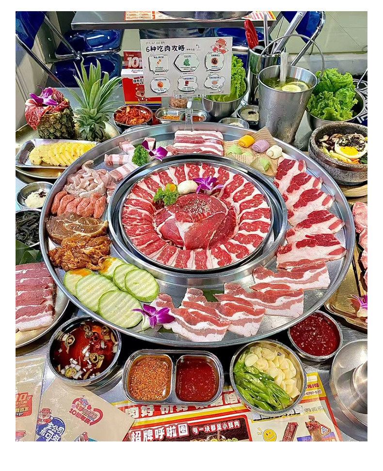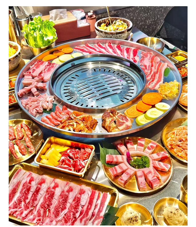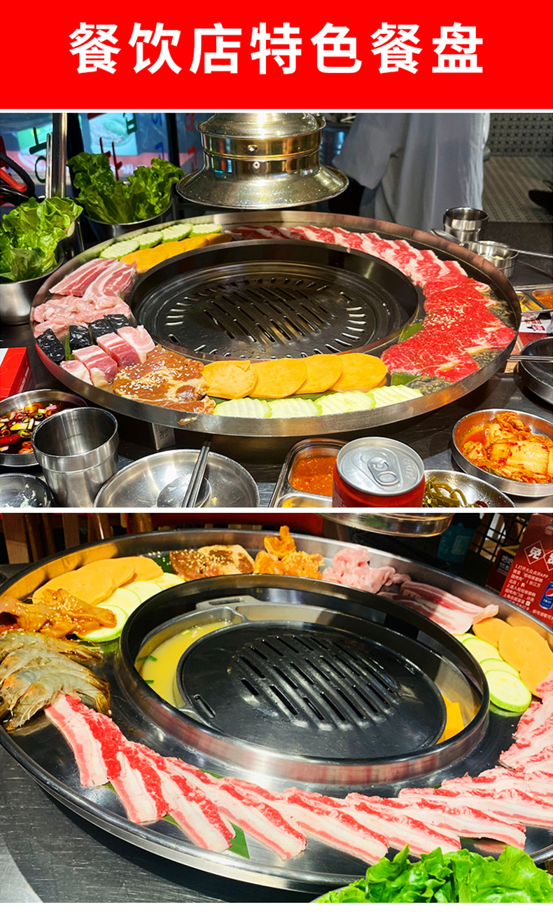 도매 한국 접시 바베큐 가게 훌라 후프 스테인레스 스틸 디스크 식기 일본 바베큐 냄비 트레이스토어 가기