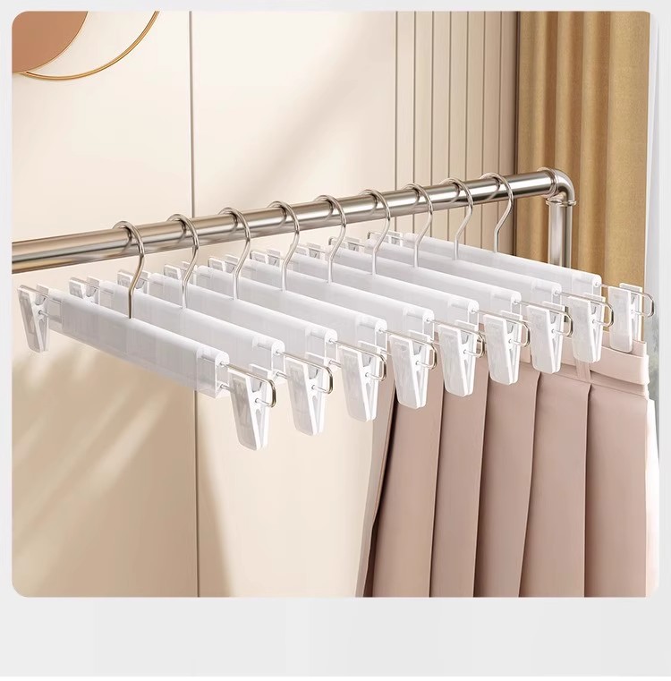 반투명 바지 걸이 플라스틱 바지 클립 의류 매장 가정용 성인 무봉제 옷걸이 다채로운 반투명 옷걸이 개폐식 바지 클립