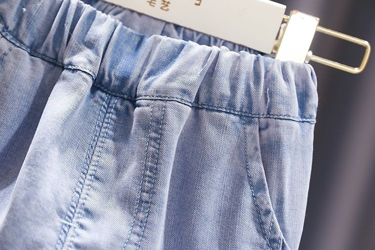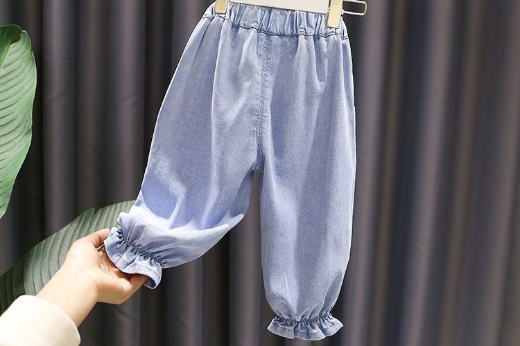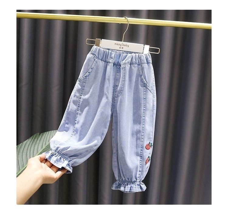 여름 소녀 청바지 아기의 서양식 어린이 맞춤형 트렌디 브랜드 안티 유행 귀여운 딸기 모기 텐트 발목 바지스토어 가기