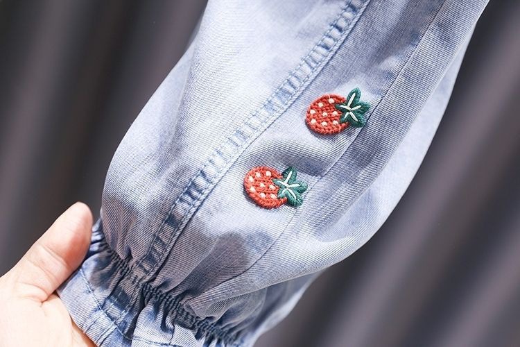 여름 소녀 청바지 아기의 서양식 어린이 맞춤형 트렌디 브랜드 안티 유행 귀여운 딸기 모기 텐트 발목 바지