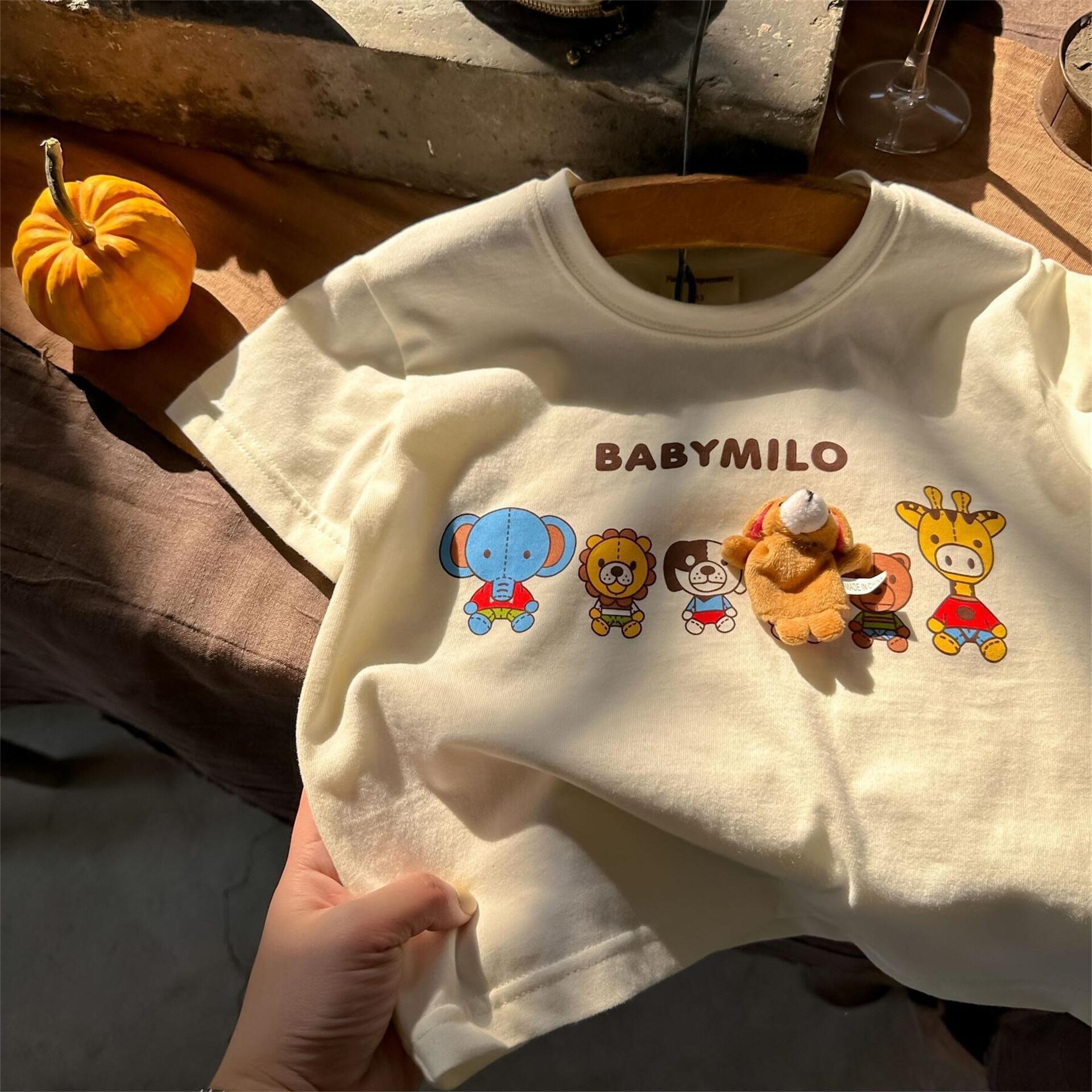 [3 차원 인형독] 어린이 반팔 티셔츠 여름 2025 여름 새로운 느슨한 아기 만화 탑