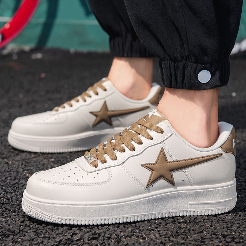 Cape Star Air Force One 여성용 남성용 파란색과 흰색 도자기 우유 커피 남성용 신발 남성용 밀 컬러 스포츠 로우 탑 캐주얼 스니커즈