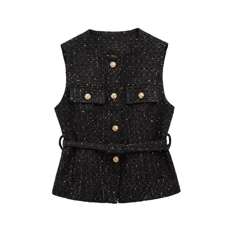 KAOPU ZA 유럽과 미국의 국경 간 여성 의류 도매 여성 벨트 구슬 장식 질감 조끼 조끼