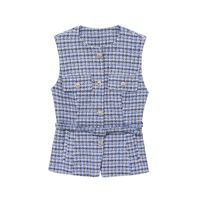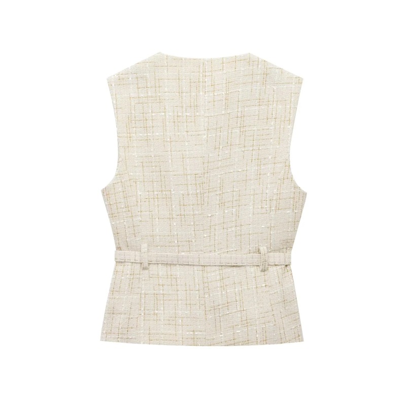 KAOPU ZA 유럽과 미국의 국경 간 여성 의류 도매 여성 벨트 구슬 장식 질감 조끼 조끼스토어 가기