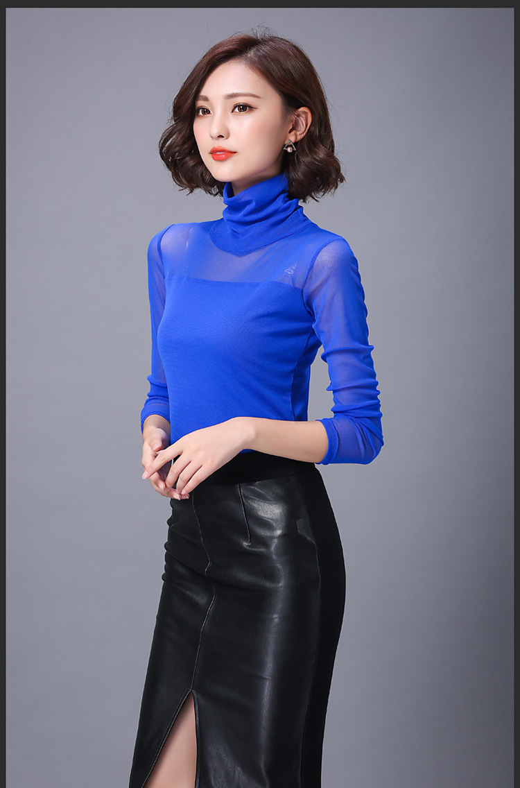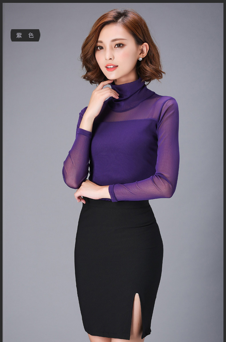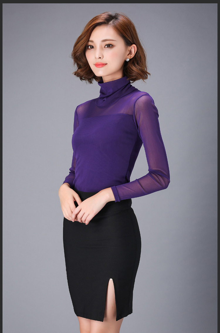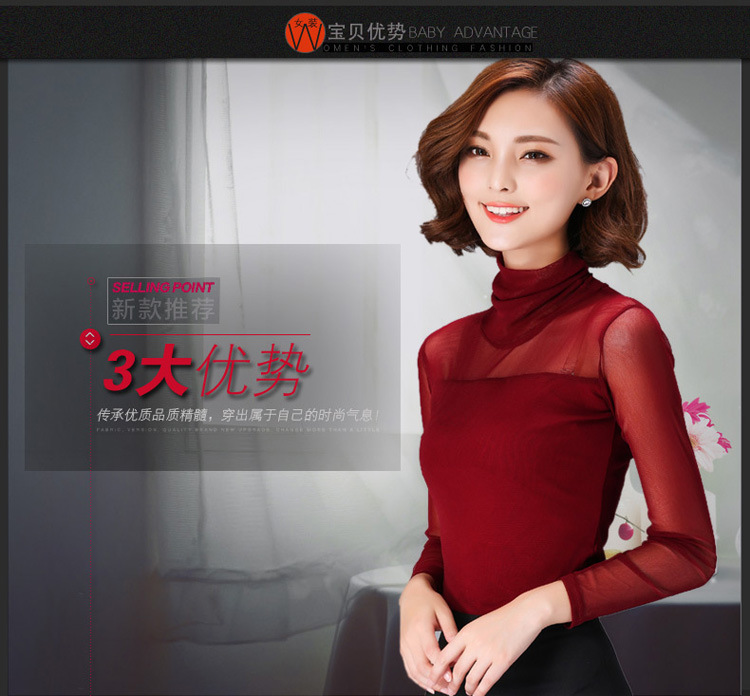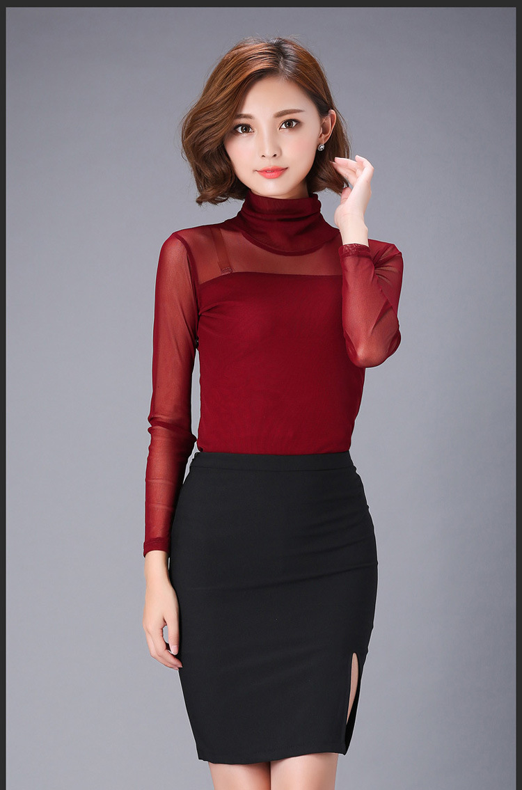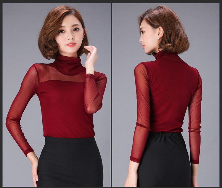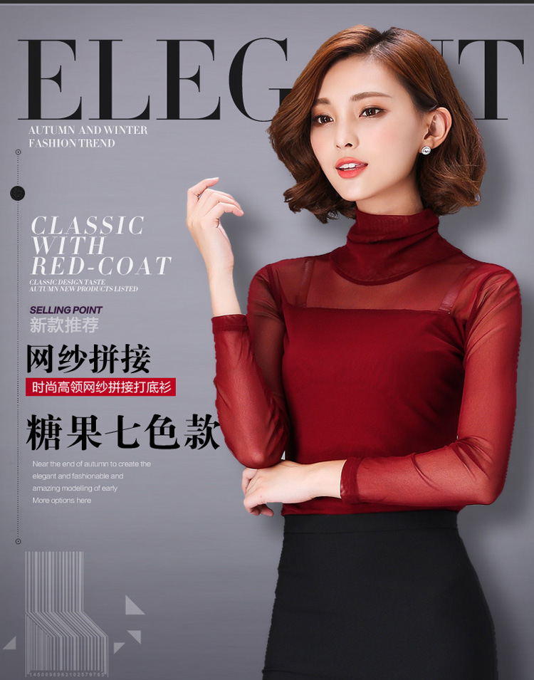 실제 촬영 봄과 가을 새로운 스타일의 하이 칼라 클래식 다용도 메쉬 바닥 셔츠 플러스 사이즈 여성 셔츠