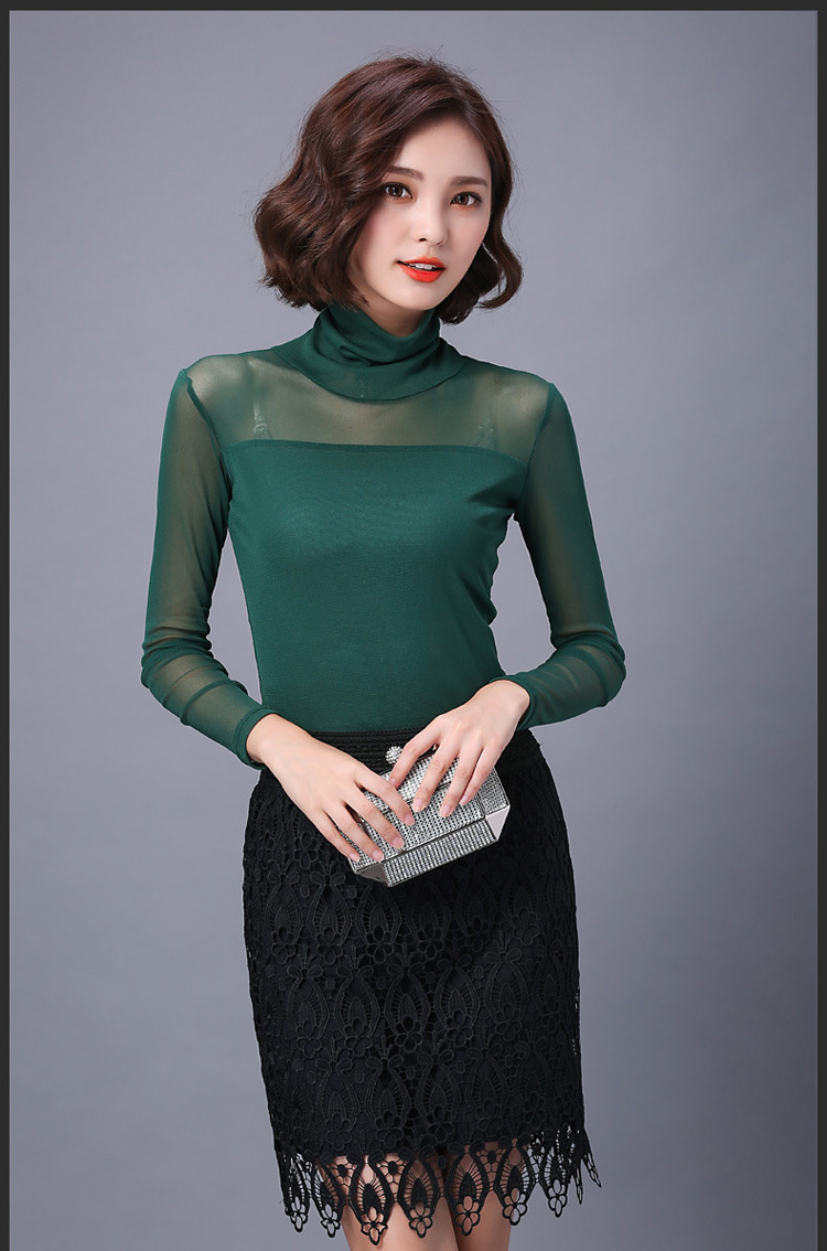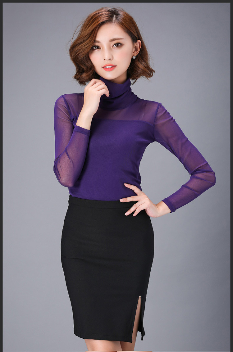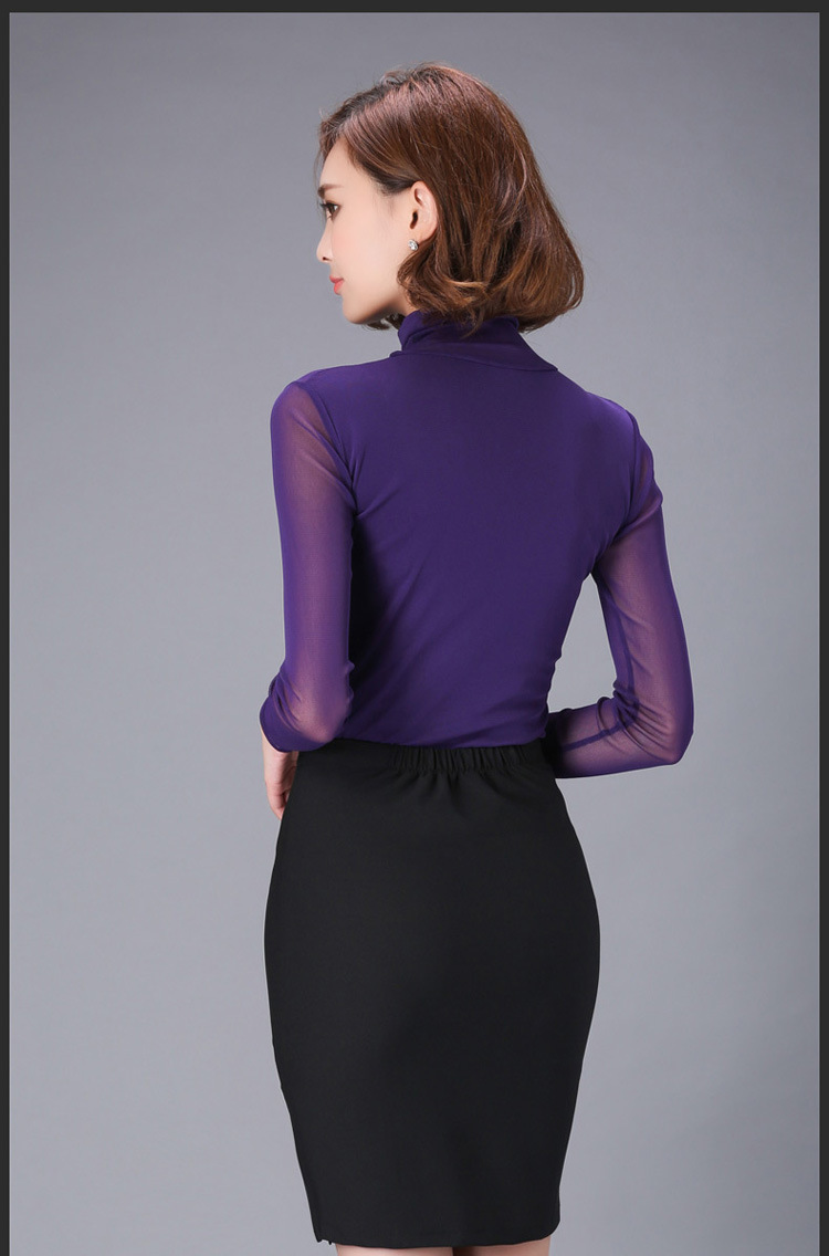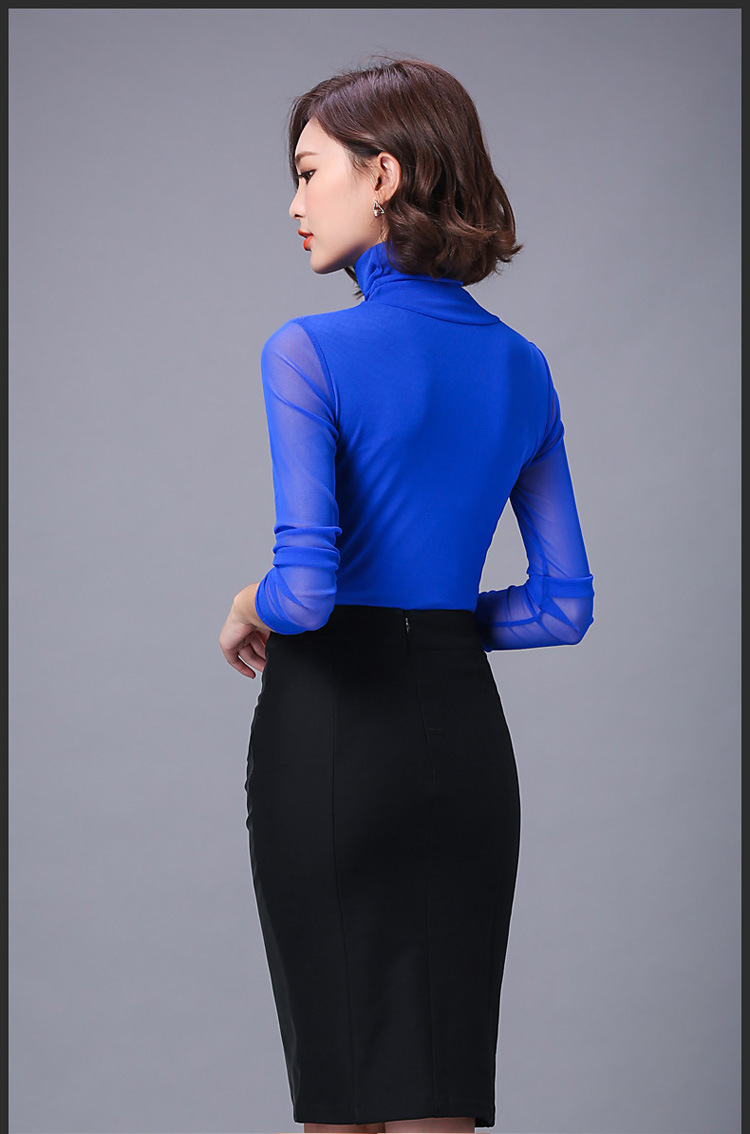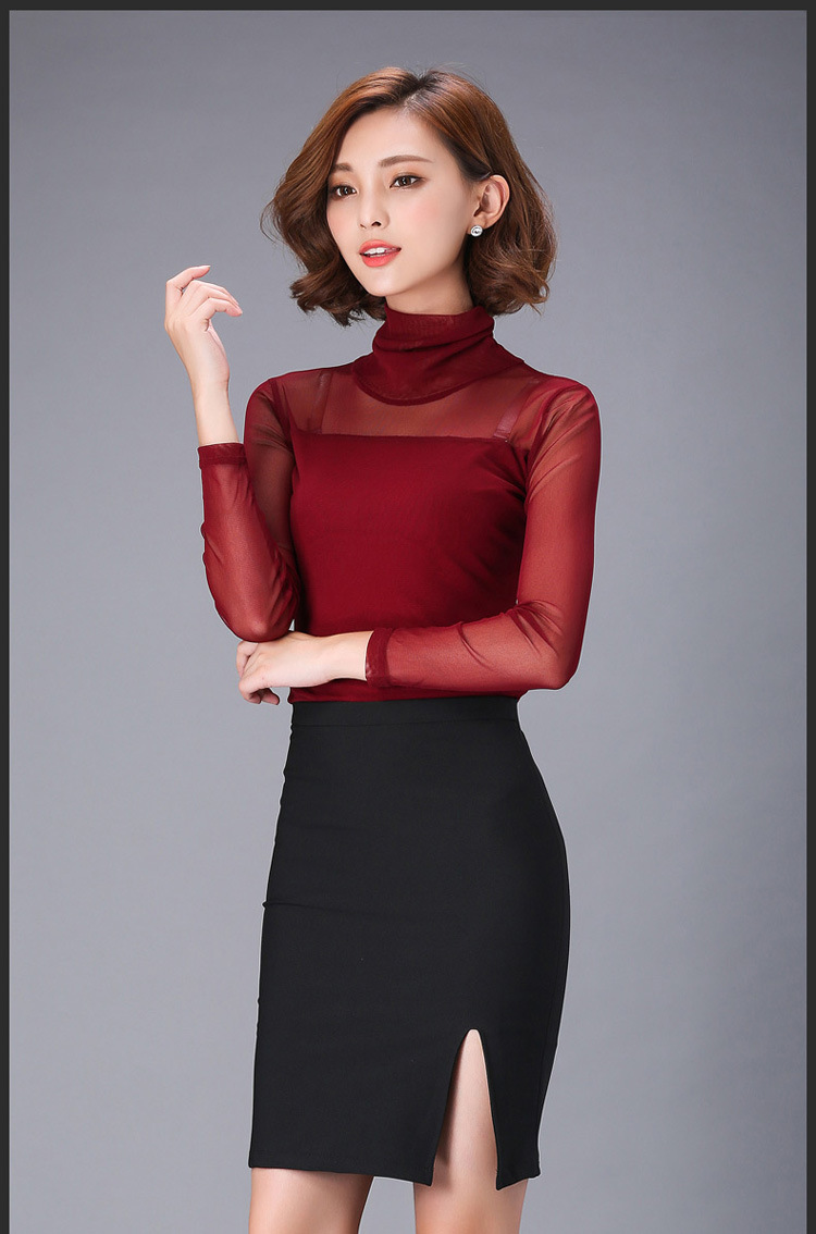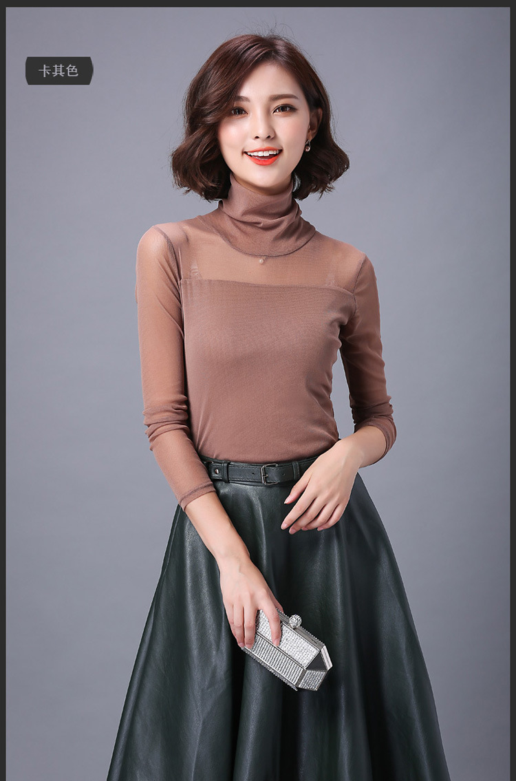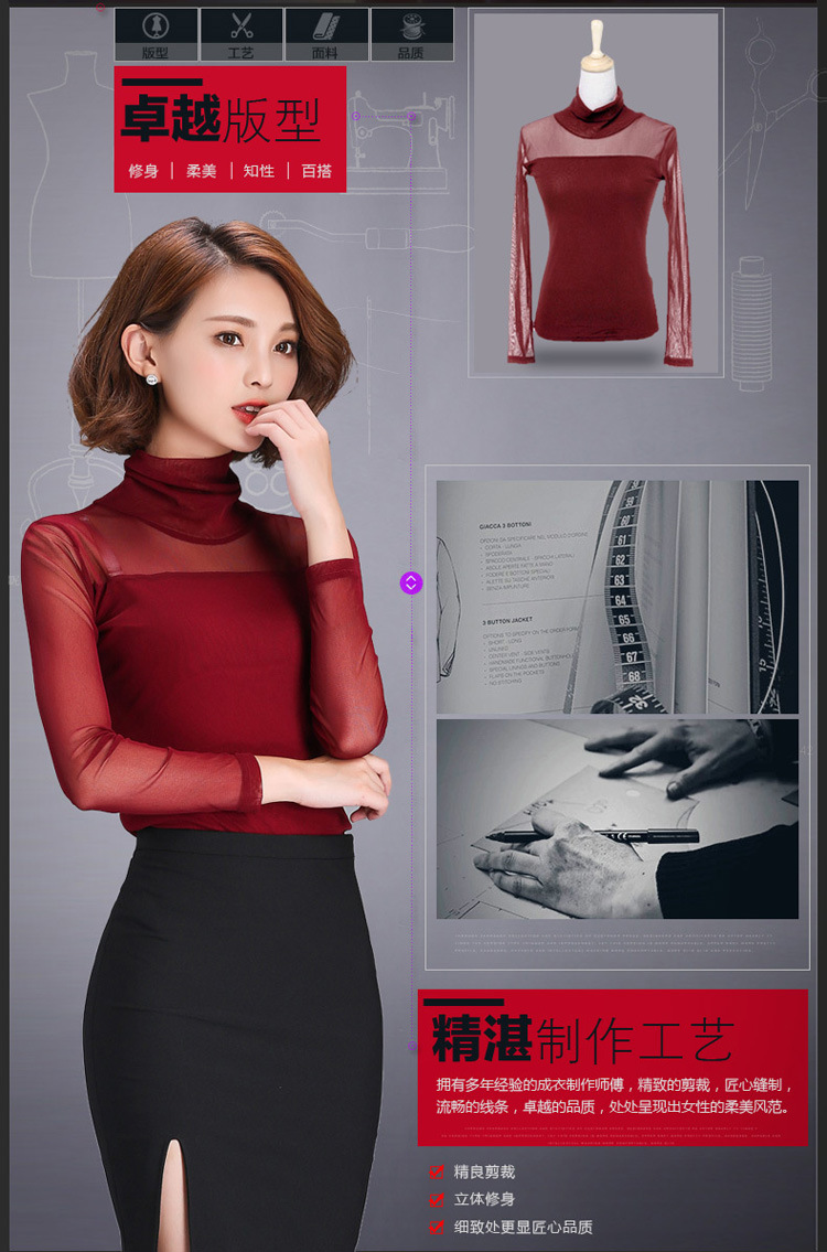 실제 촬영 봄과 가을 새로운 스타일의 하이 칼라 클래식 다용도 메쉬 바닥 셔츠 플러스 사이즈 여성 셔츠