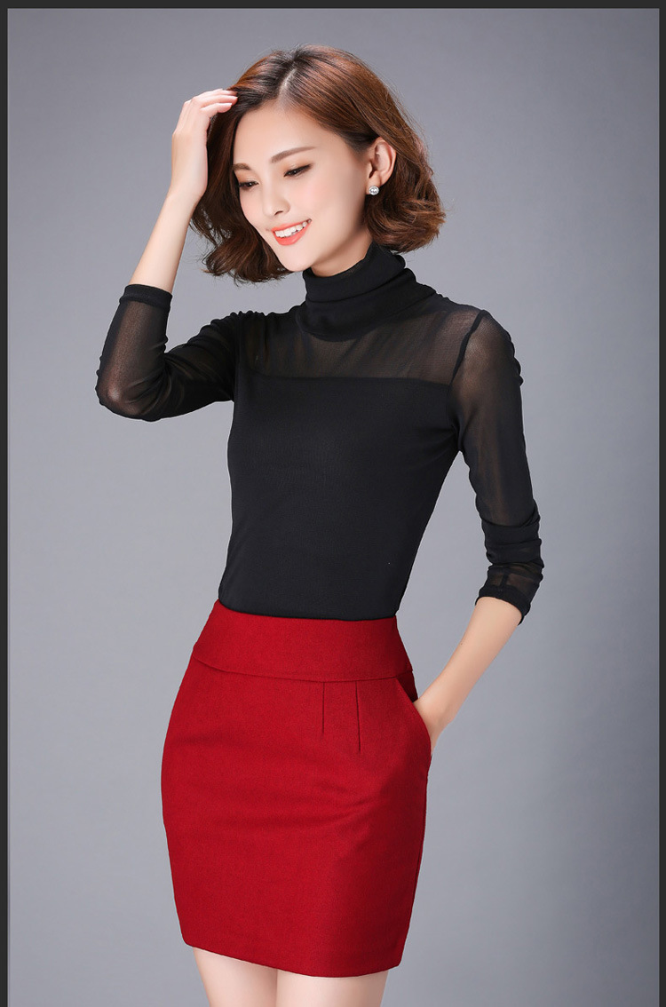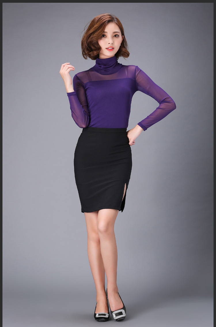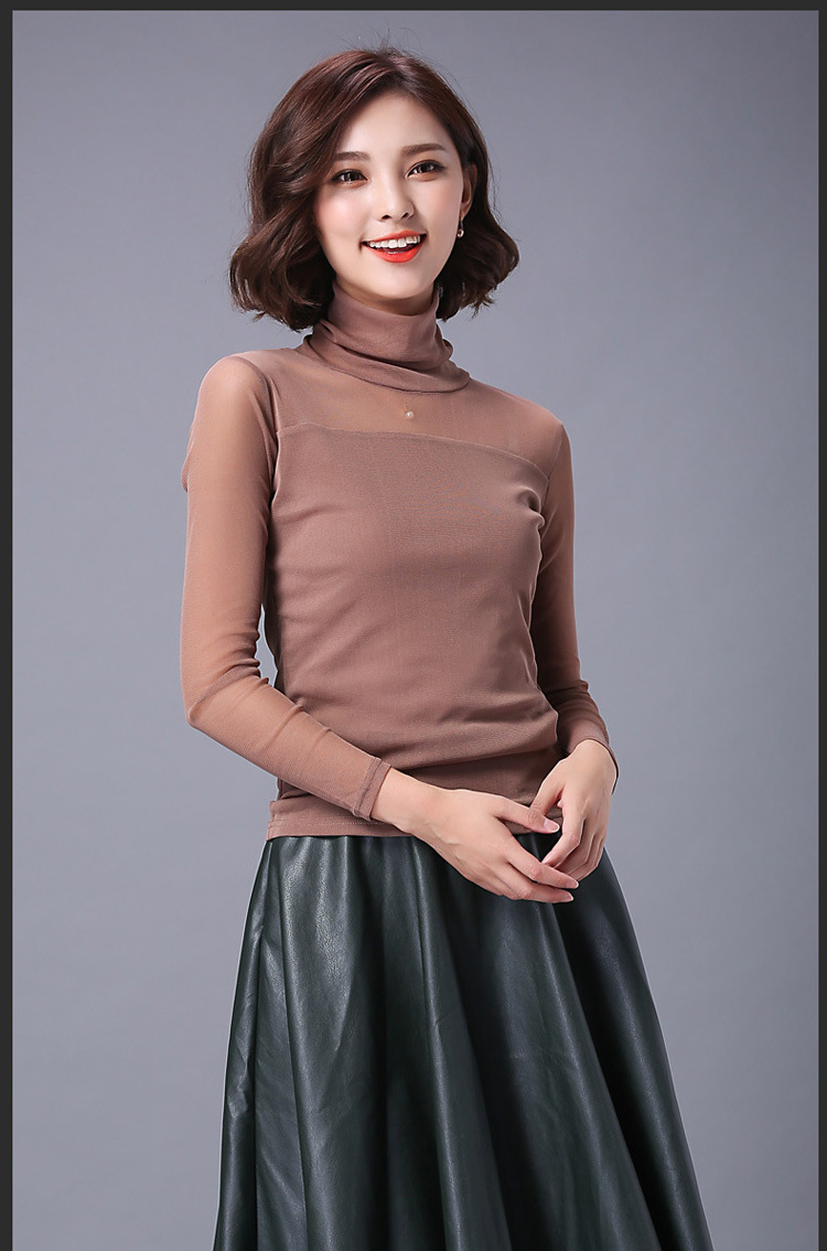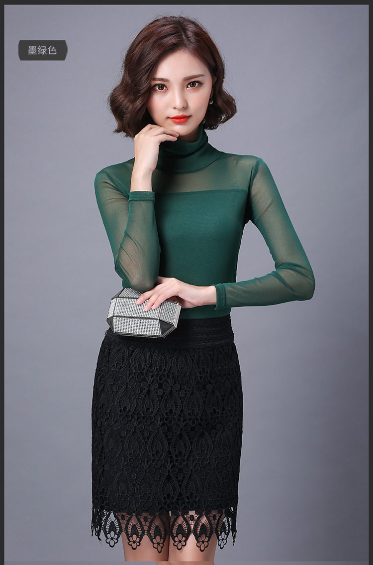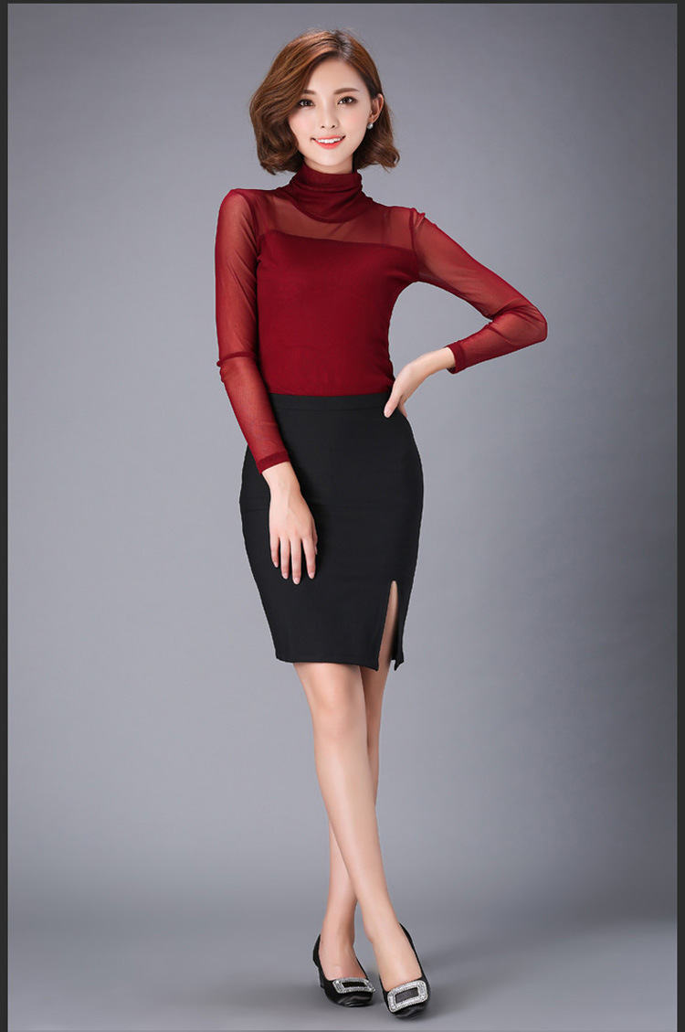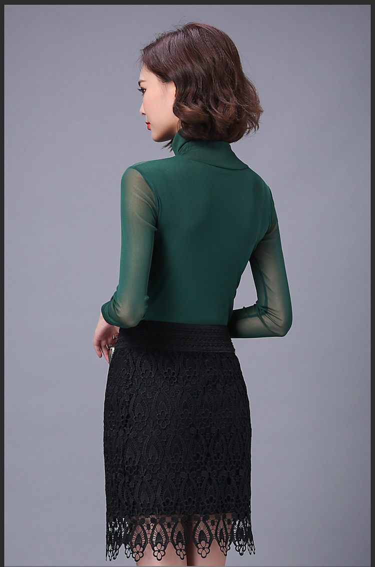 실제 촬영 봄과 가을 새로운 스타일의 하이 칼라 클래식 다용도 메쉬 바닥 셔츠 플러스 사이즈 여성 셔츠