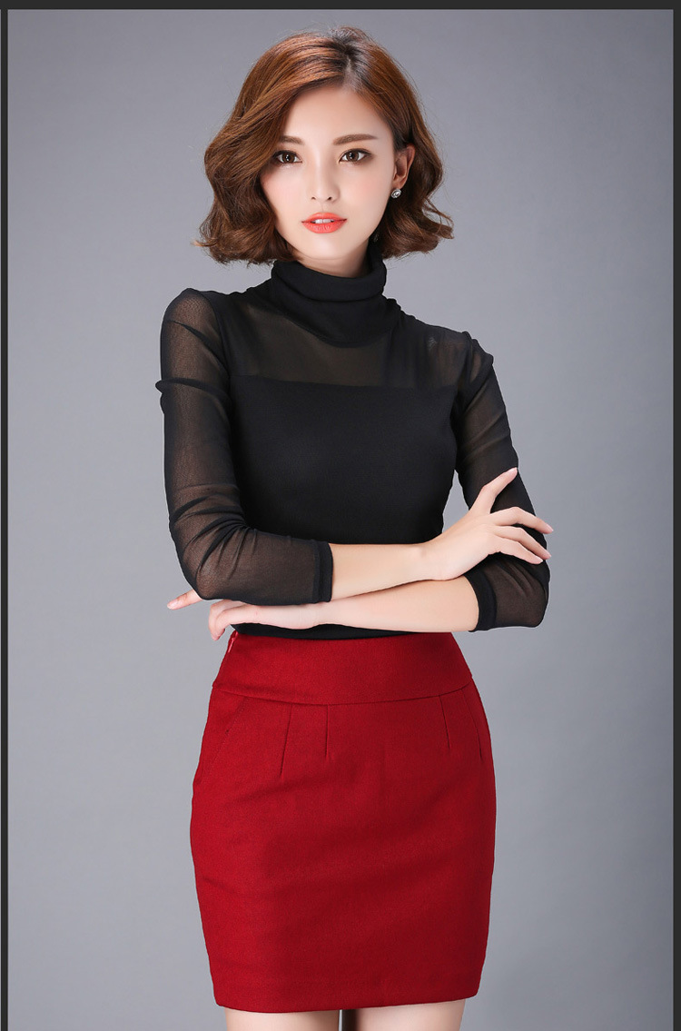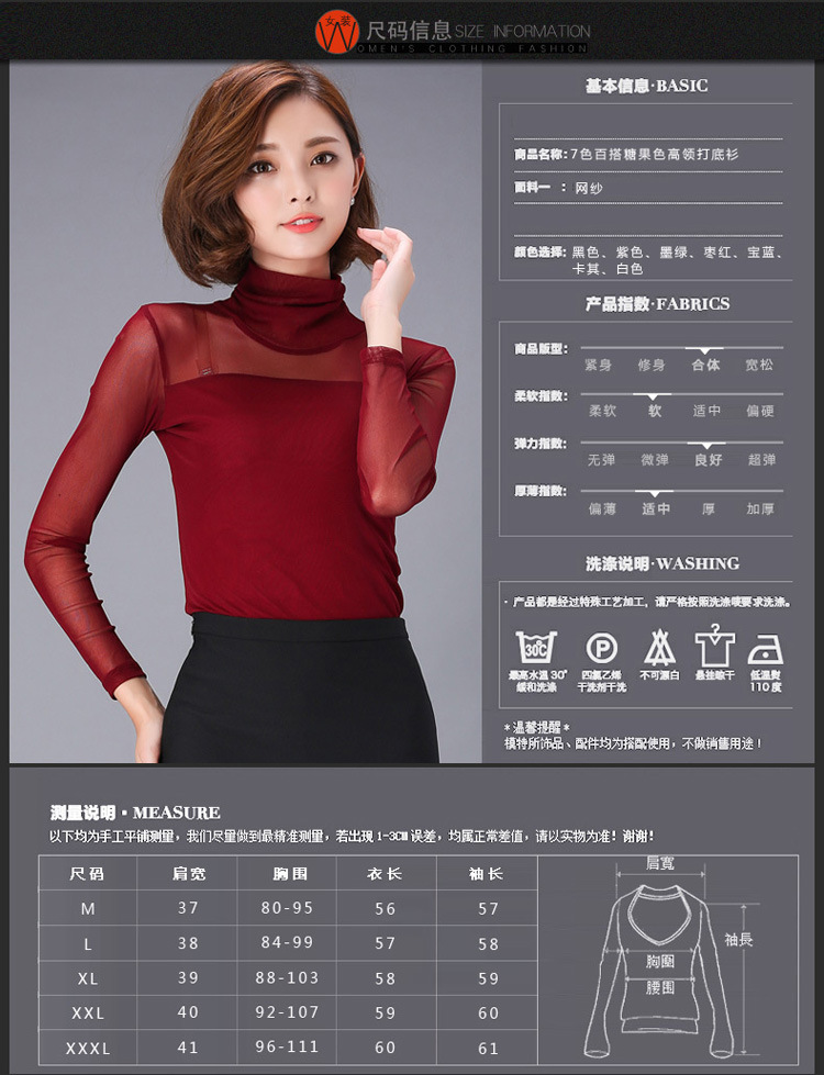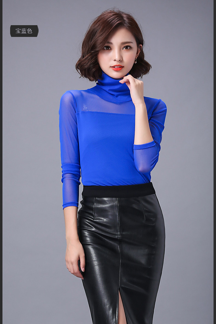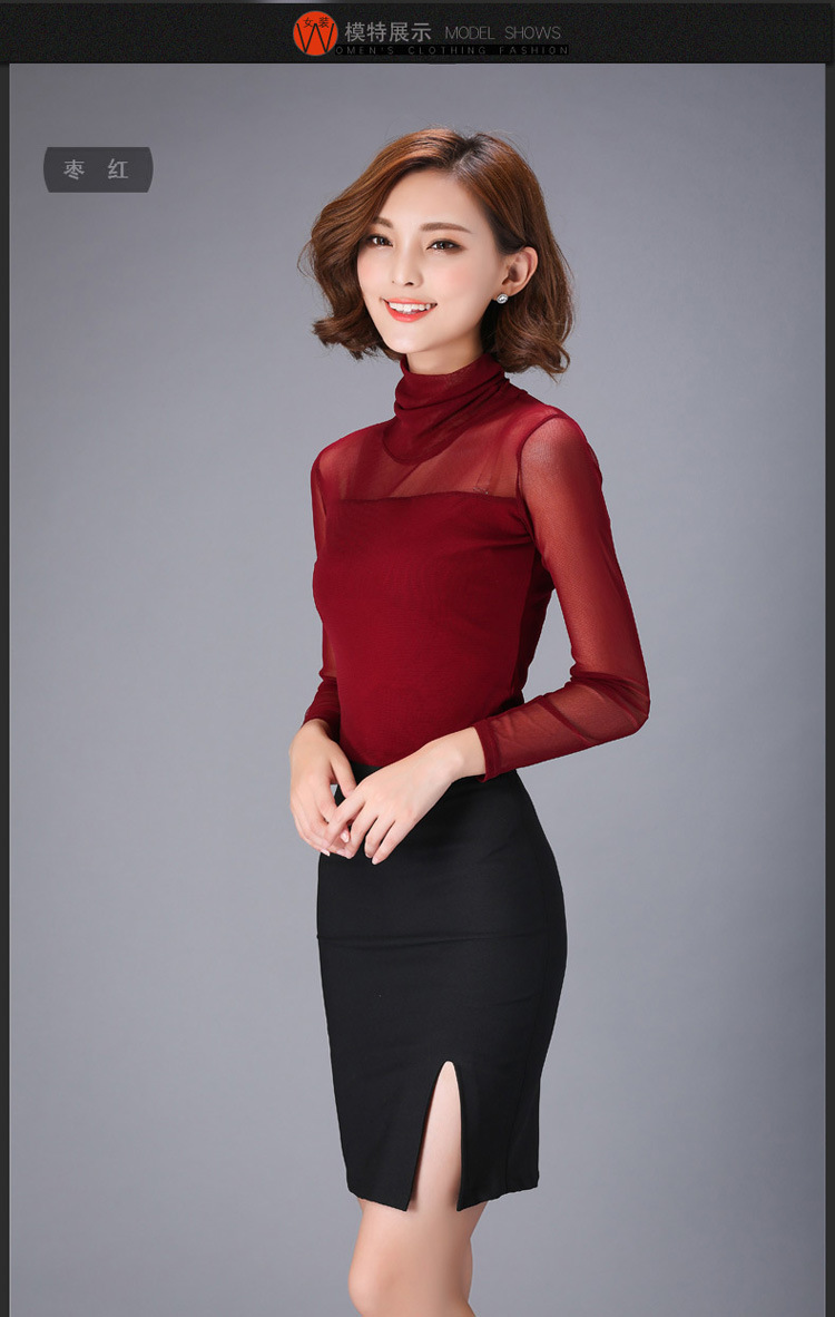 실제 촬영 봄과 가을 새로운 스타일의 하이 칼라 클래식 다용도 메쉬 바닥 셔츠 플러스 사이즈 여성 셔츠스토어 가기