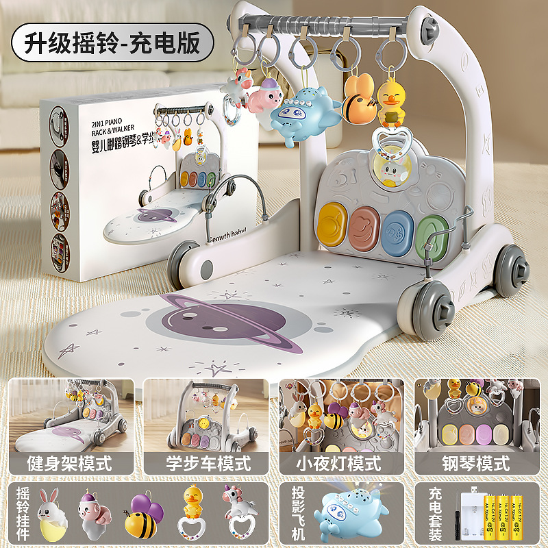 • 피트니스 스탠드 + 보행기 [업그레이드된 딸랑이] 충전식 버전 + 프로젝션 비행기