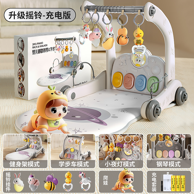 • 피트니스 스탠드 + 보행기 [업그레이드된 딸랑이] 충전식 버전 + 뮤지컬 크롤러(크롤링 훈련 학습)