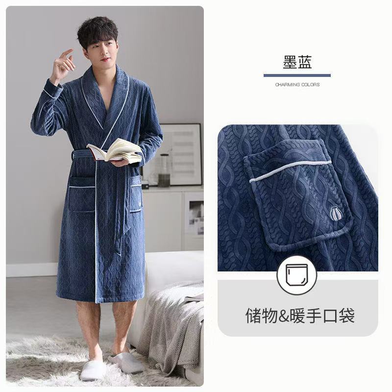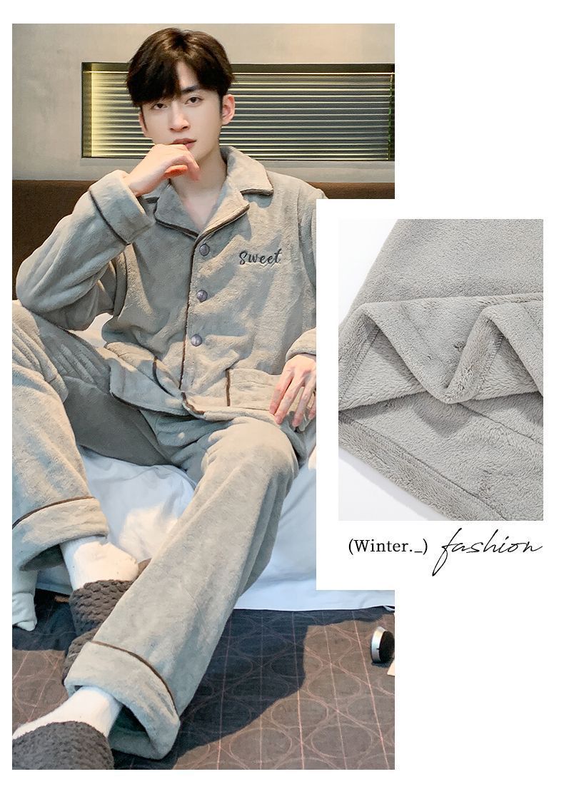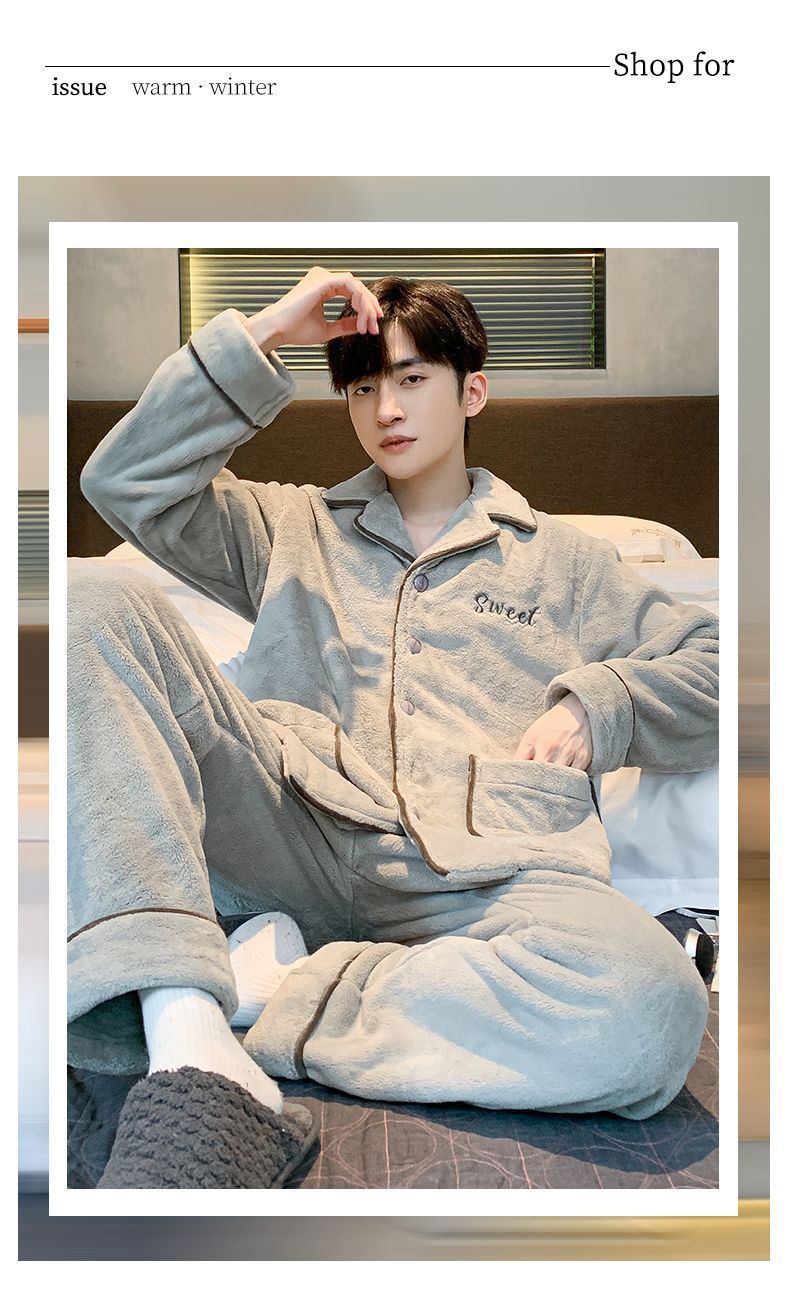 겨울철 남성용 산호 벨벳 잠옷 플러스 벨벳 두꺼운 따뜻한 겨울 청소년 소년 홈웨어 세트스토어 가기