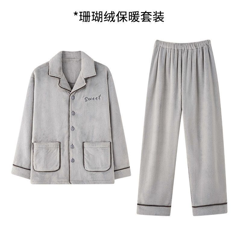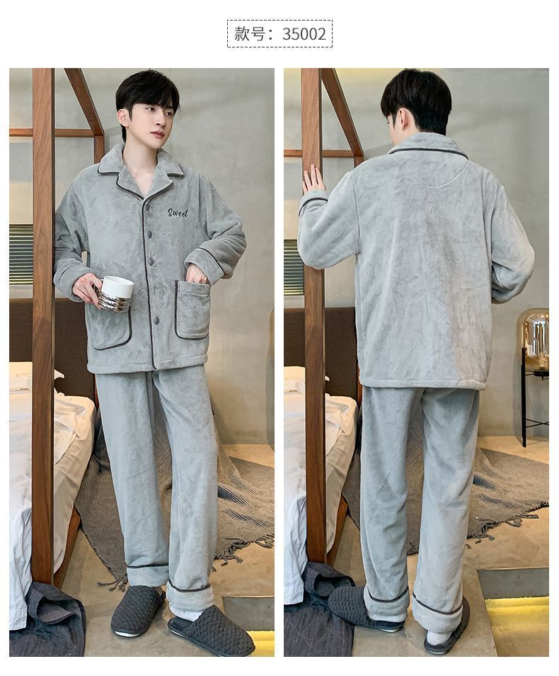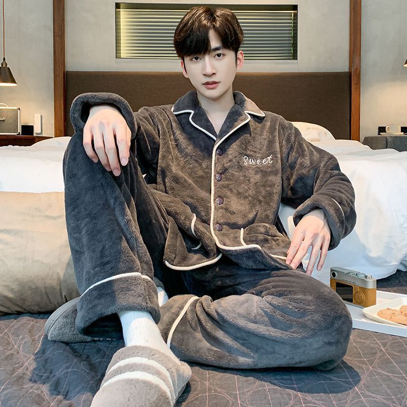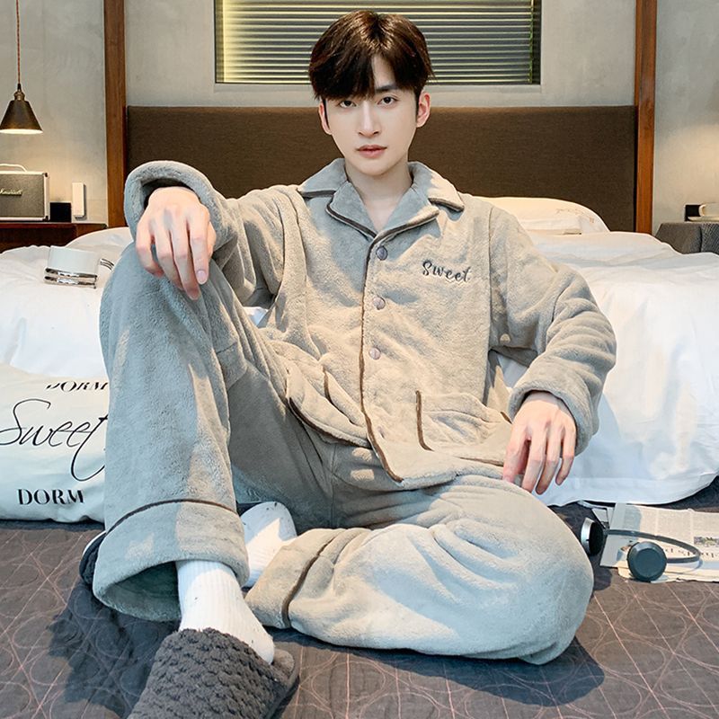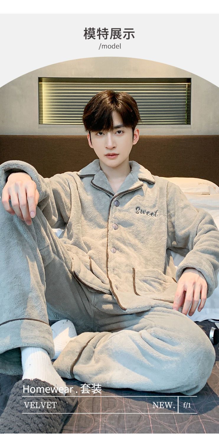 겨울철 남성용 산호 벨벳 잠옷 플러스 벨벳 두꺼운 따뜻한 겨울 청소년 소년 홈웨어 세트