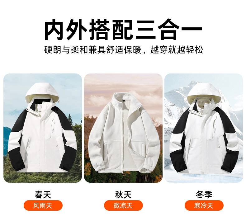 2024 가을, 겨울 새로운 야외 솔리드 컬러 커플 코트 남성과 여성을위한 3-in-one 재킷 재킷 유행상의