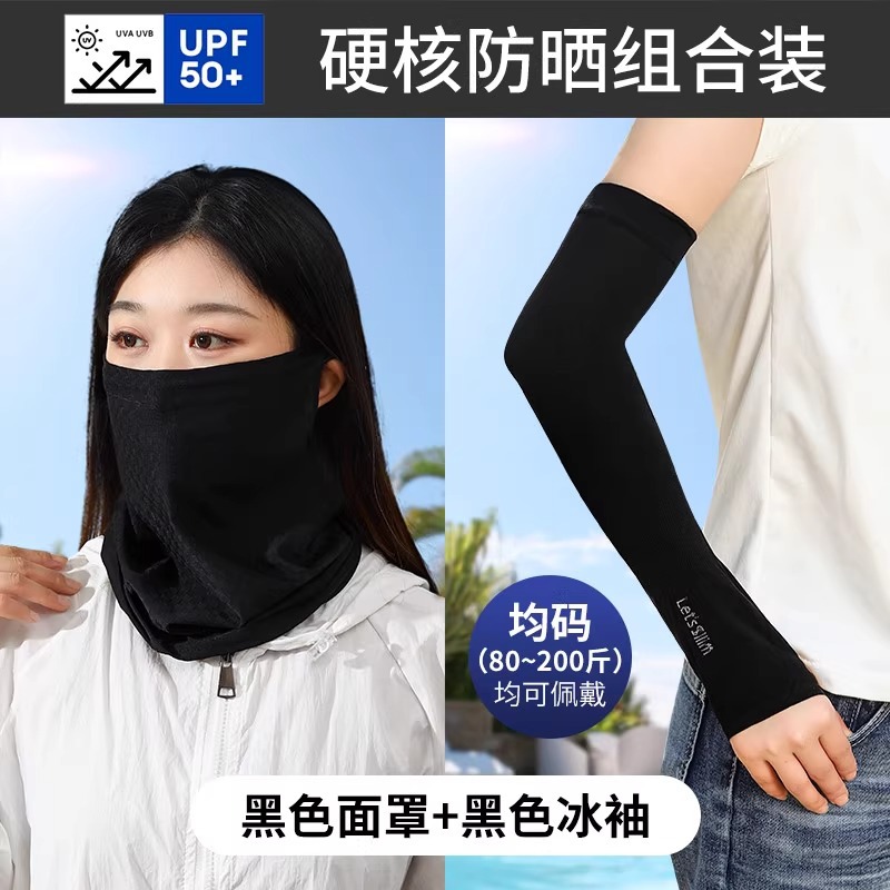 • 야외용 범용 대형 모델 UPF50 자외선 차단 [고밀도 아이스 실크] 블랙(마스크 슬리브)