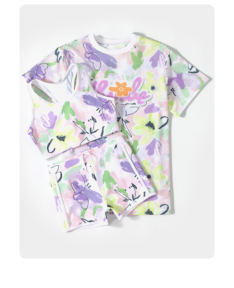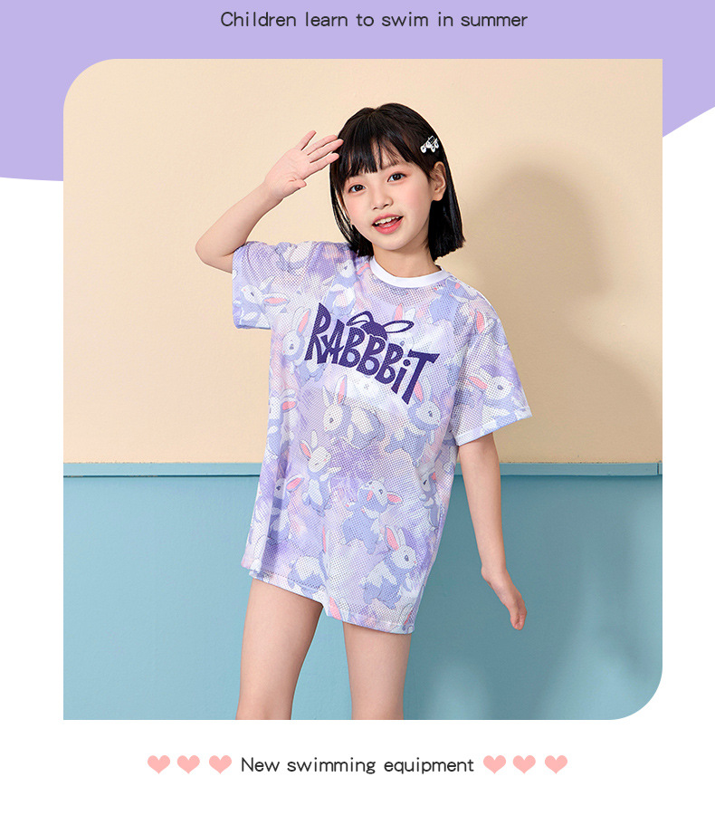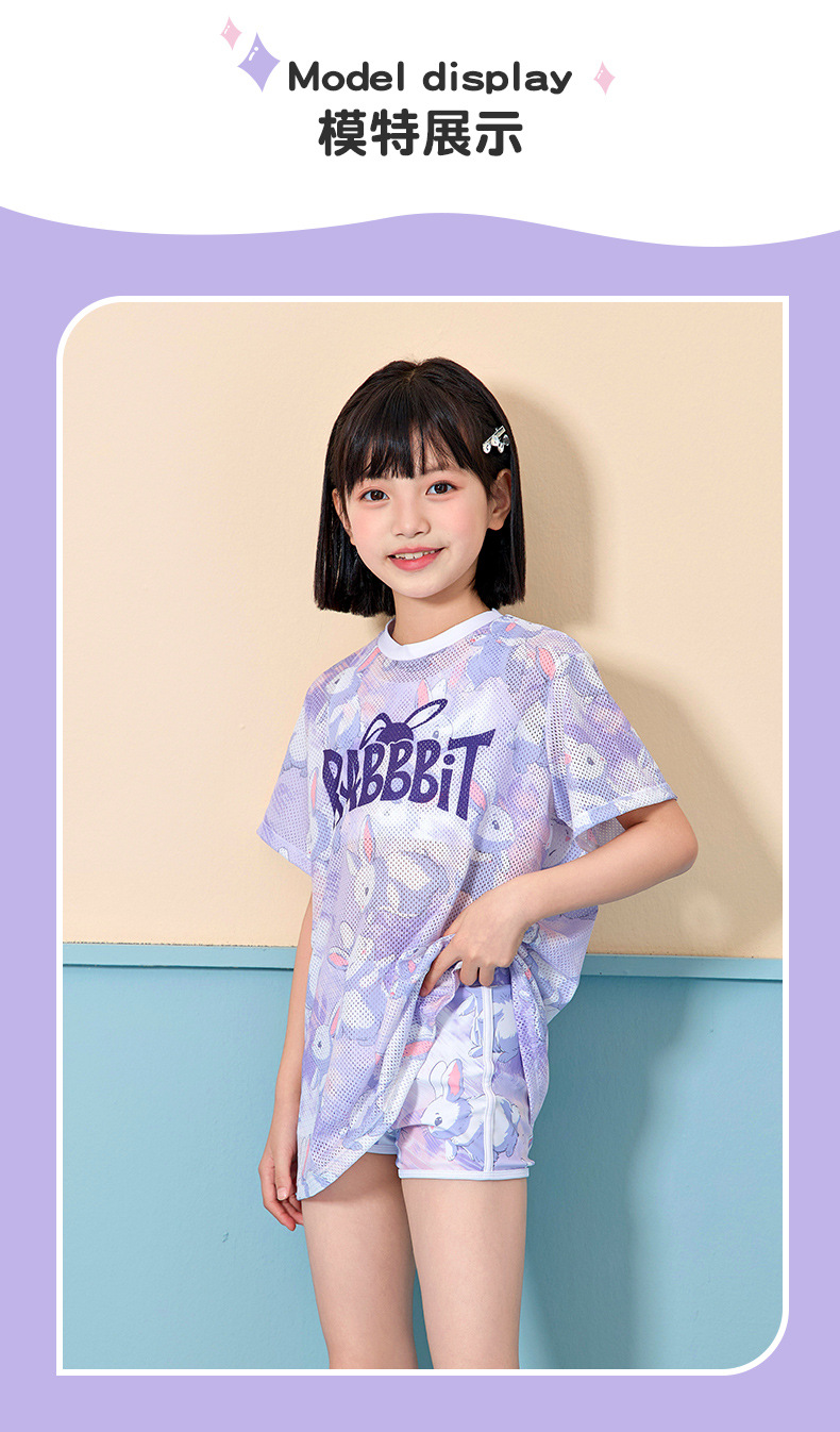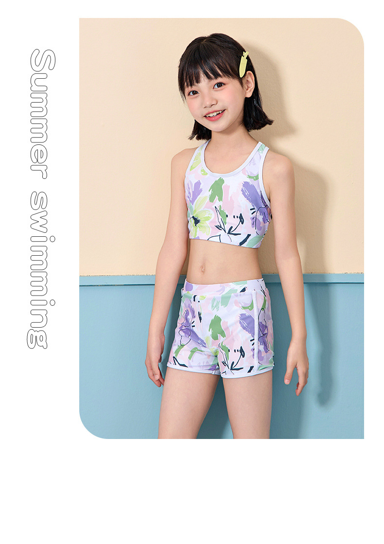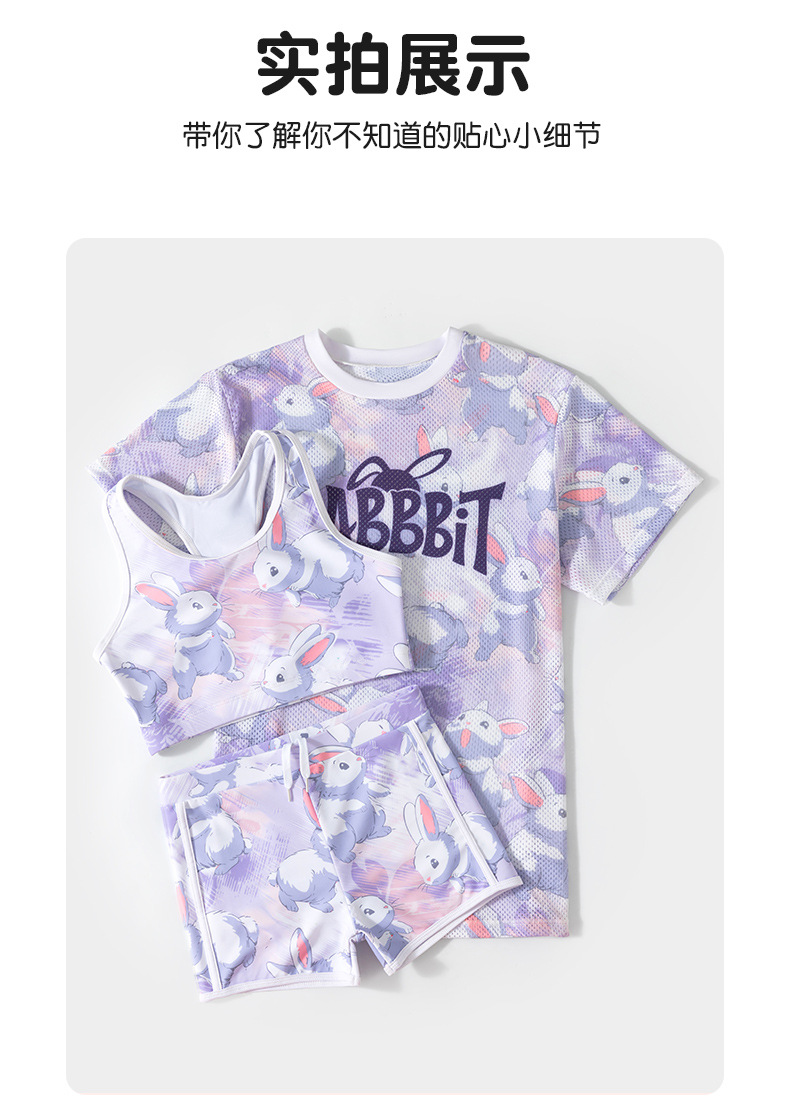 아동 수영복 여아 2025 새로운 스플릿 자외선 차단 수영복 중대형 아동 3피스 세트 보수적 수영복 여름