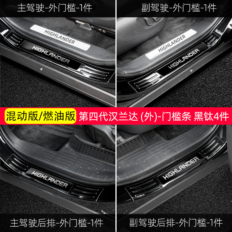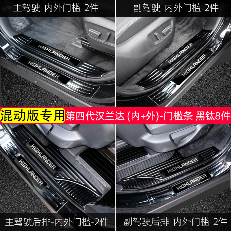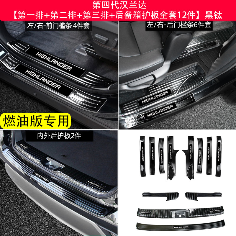 • 하이랜더 연료 버전 도어 실 스트립 + 트렁크 리어 가드 블랙 티타늄 [12개 풀 세트]