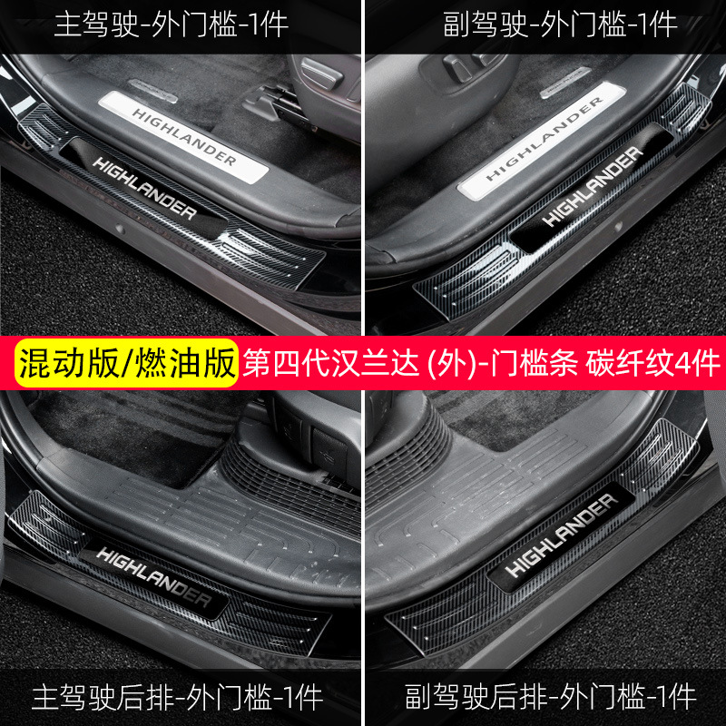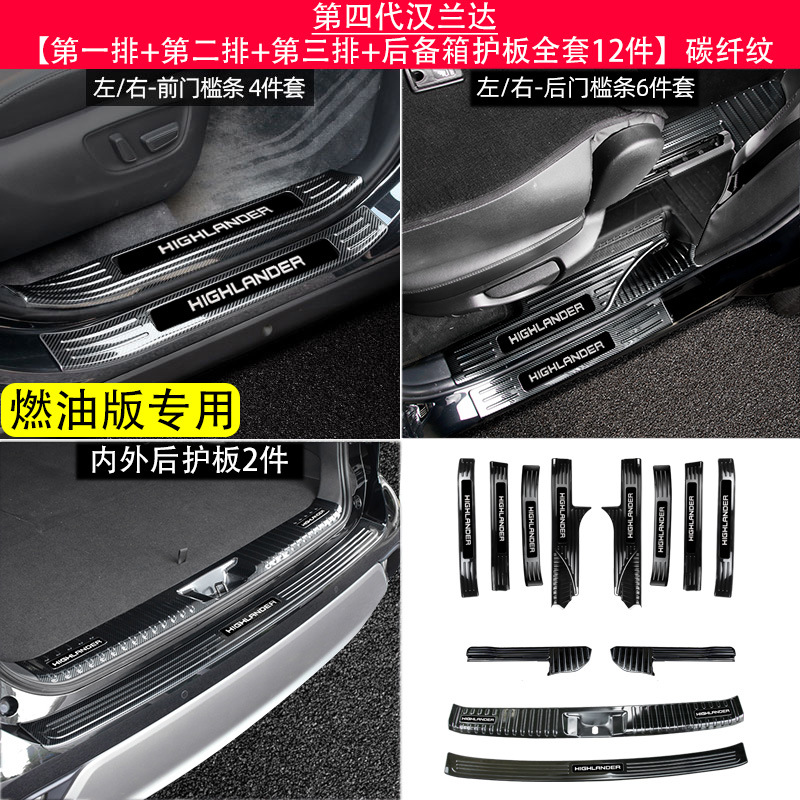 • 하이랜더 연료 버전 도어 실 스트립 + 트렁크 리어 가드 탄소 섬유 [12개 풀 세트]