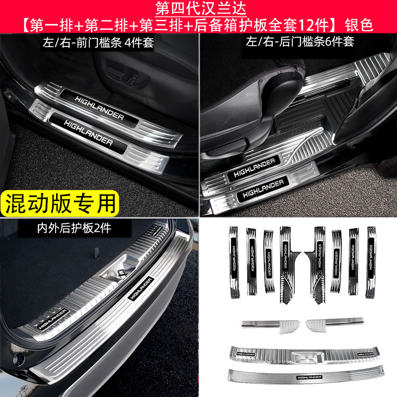 • 하이랜더 연료 버전 도어 실 스트립 + 트렁크 리어 가드 실버 [12개 풀 세트]