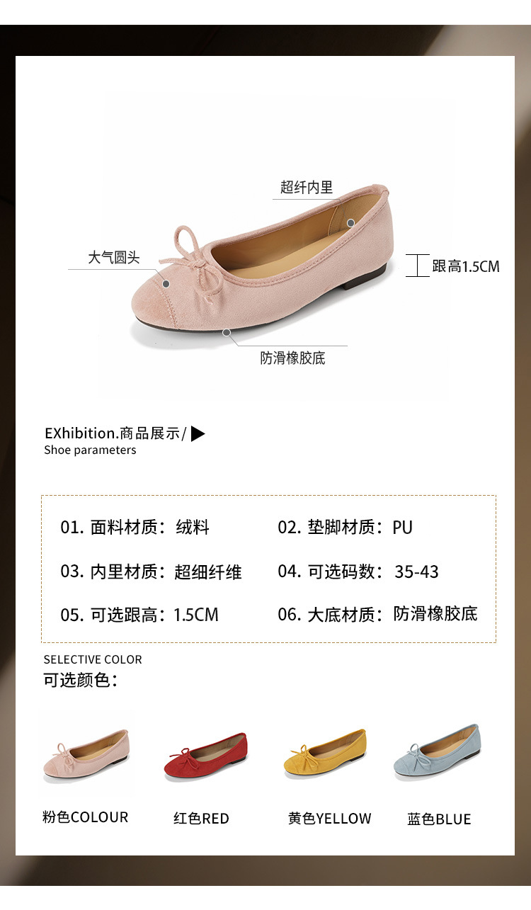 Weiwei 소녀 313-22 자이언트 소프트 프렌치 플랫 슈즈 여성용 활 발레 얕은 입 부드러운 완두콩 신발스토어 가기